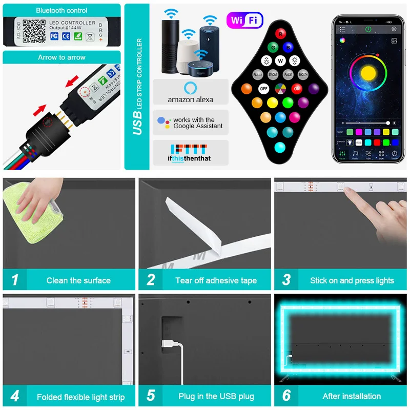 Водонепроницаемая светодиодная RGB лента для украшения спальни, телевизора, подсветильник Ки, 5 В, USB, Wi-Fi