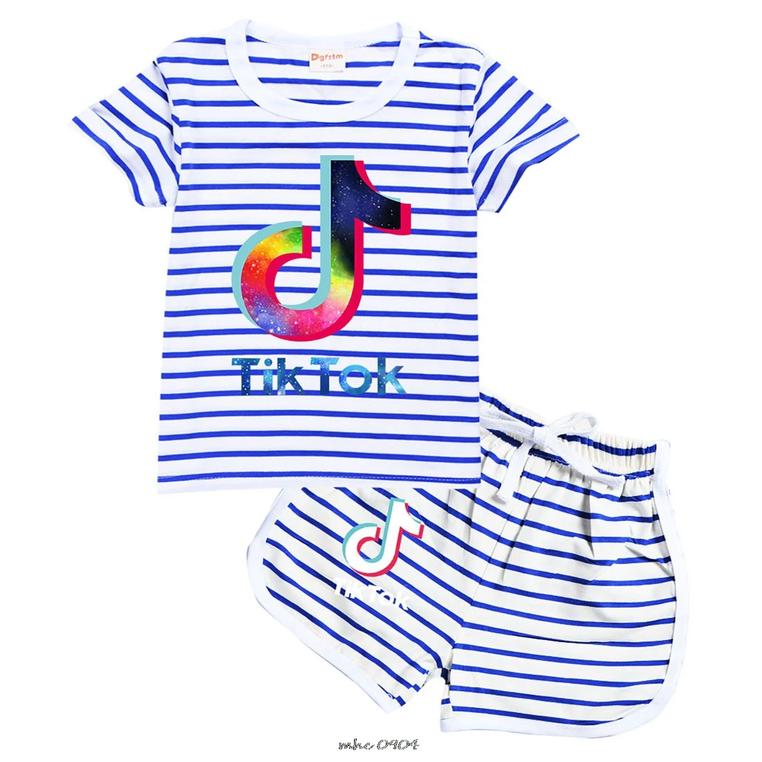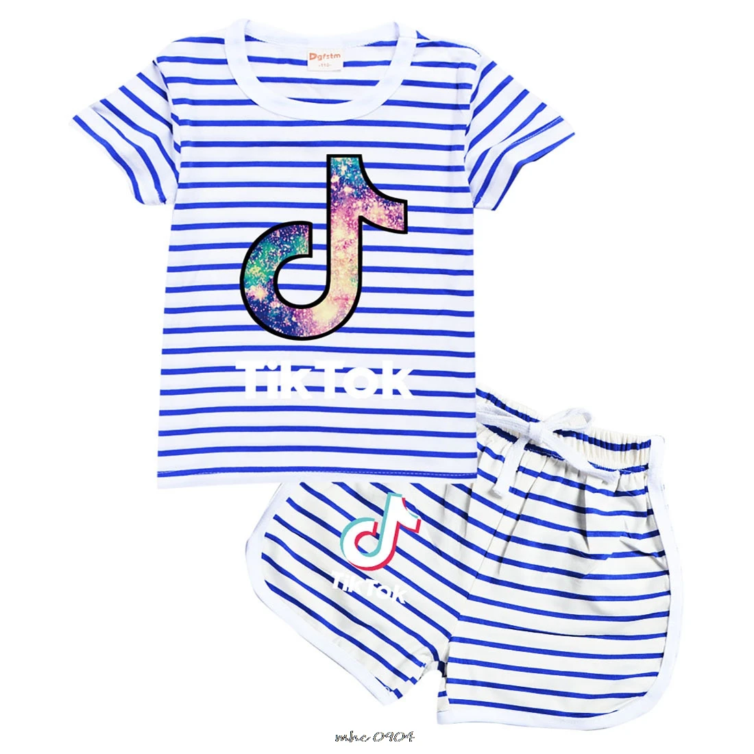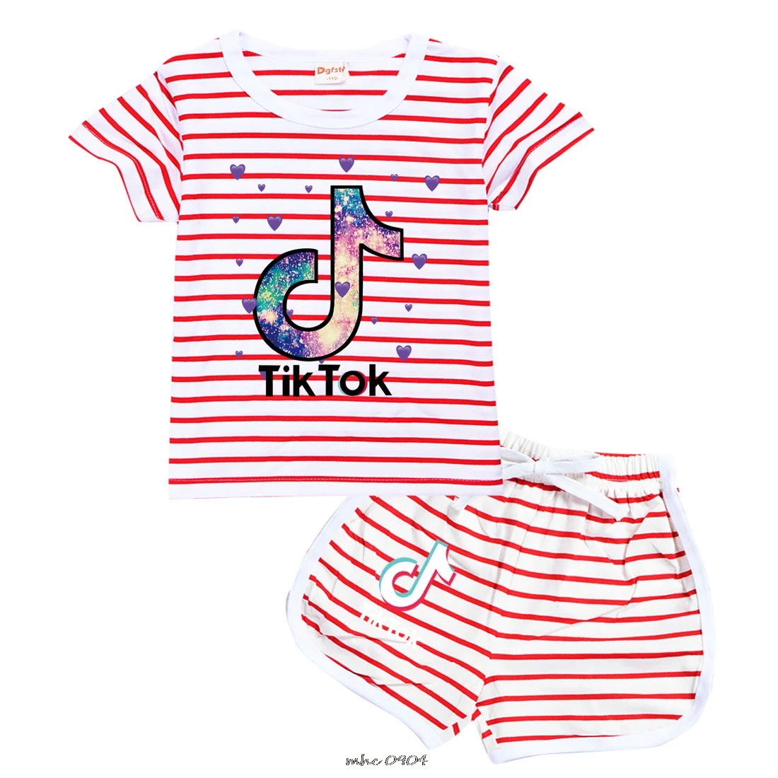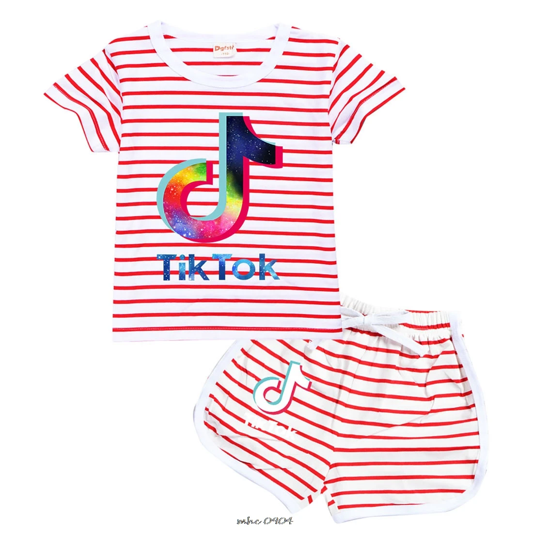 Tik Tok/Летняя одежда для мальчиков и девочек Детские футболки с короткими рукавами и шорты для девочек спортивные костюмы костюм для подростков 2-16 лет