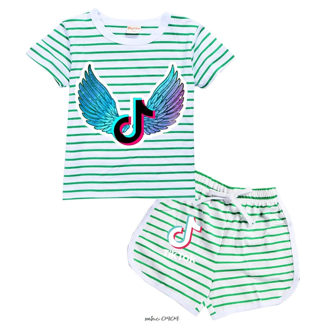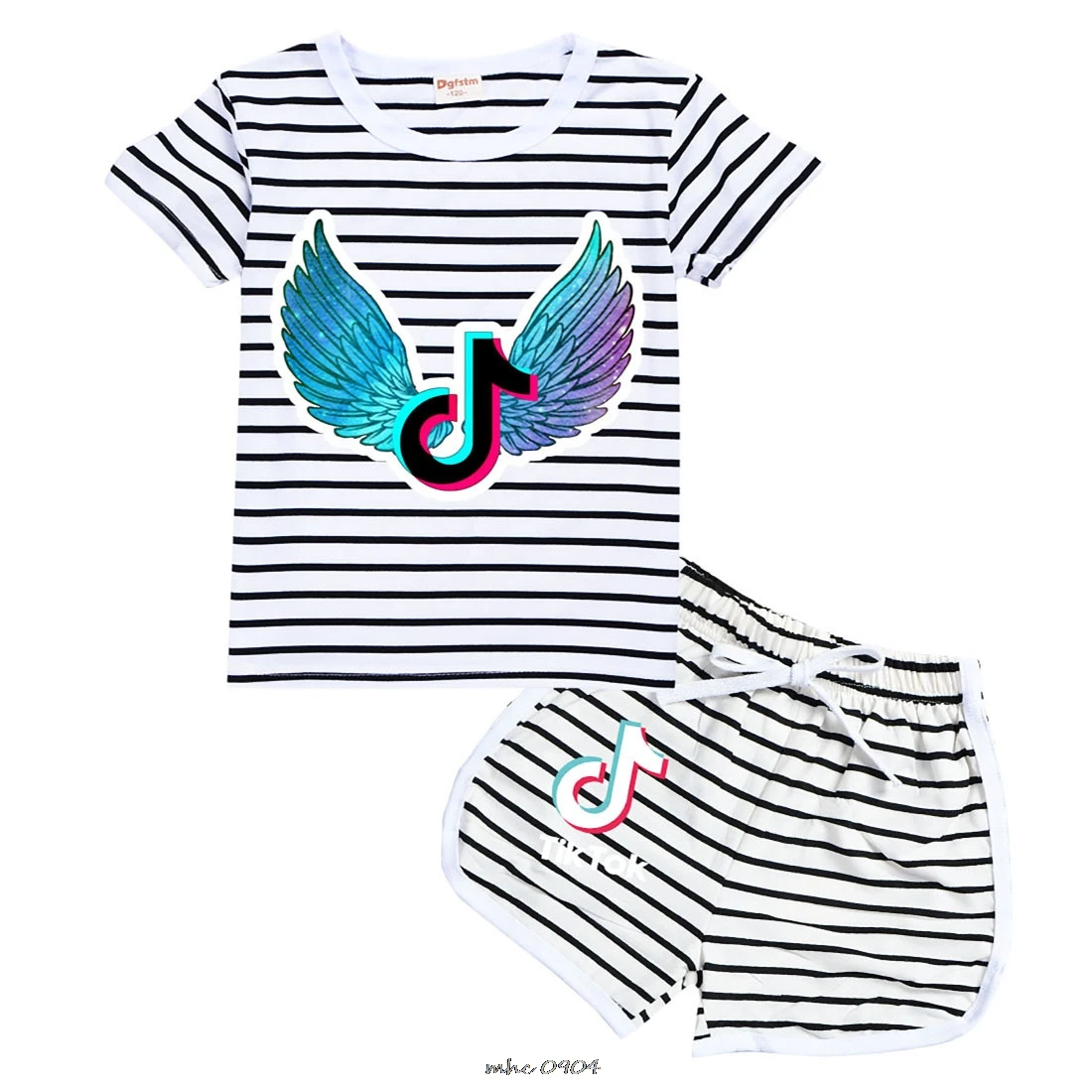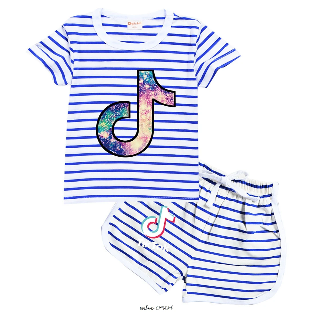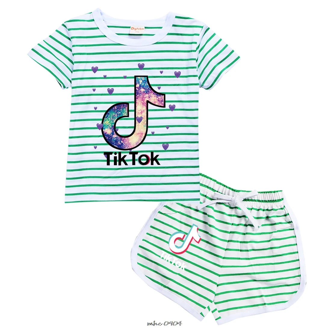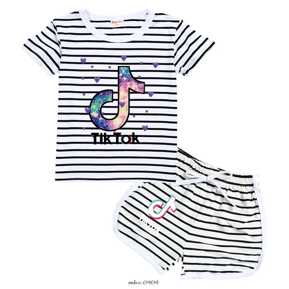 Tik Tok/Летняя одежда для мальчиков и девочек Детские футболки с короткими рукавами и шорты для девочек спортивные костюмы костюм для подростков 2-16 лет
