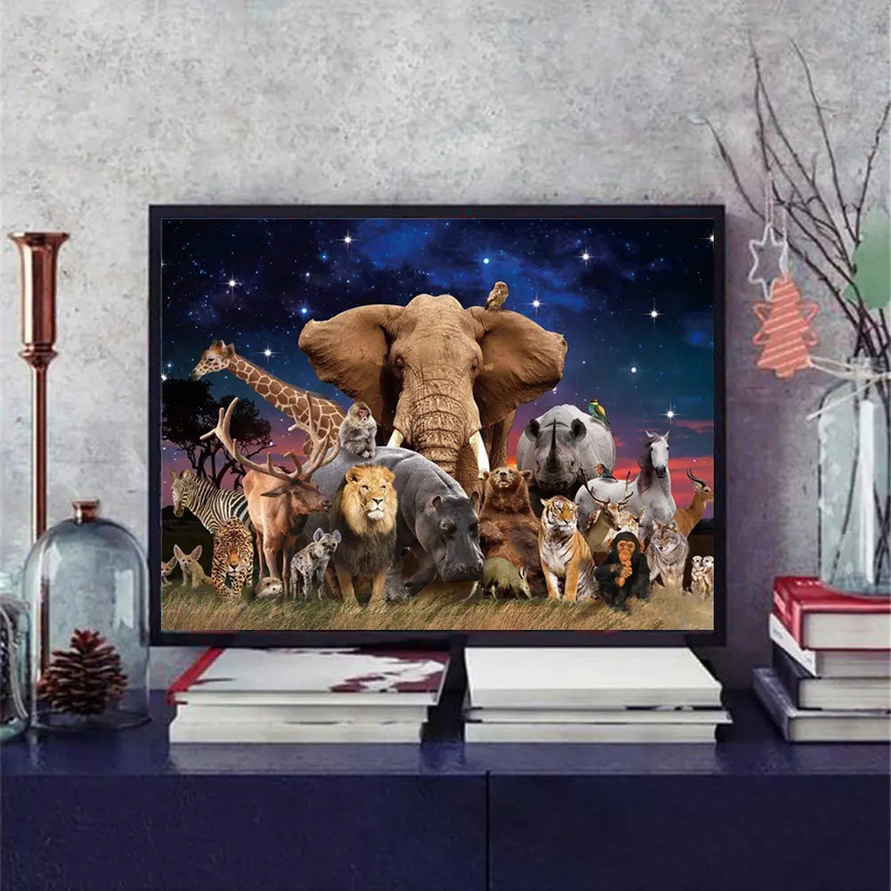 Алмазная 5d картина HUACAN со слоном, мозаика сделай сам с животными, полная выкладка, круглая вышивка крестиком, Лев, настенное искусство