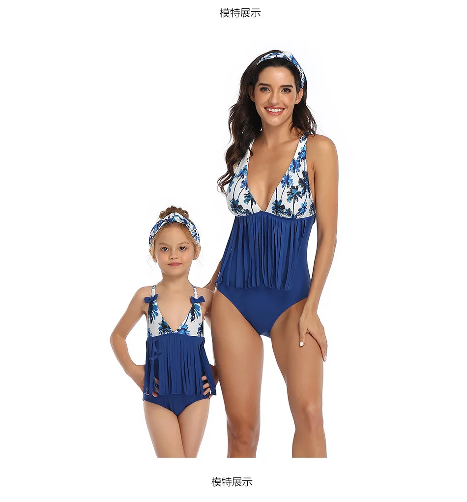 Купальники для всей семьи, голубое бикини с листьями таселя для мам...