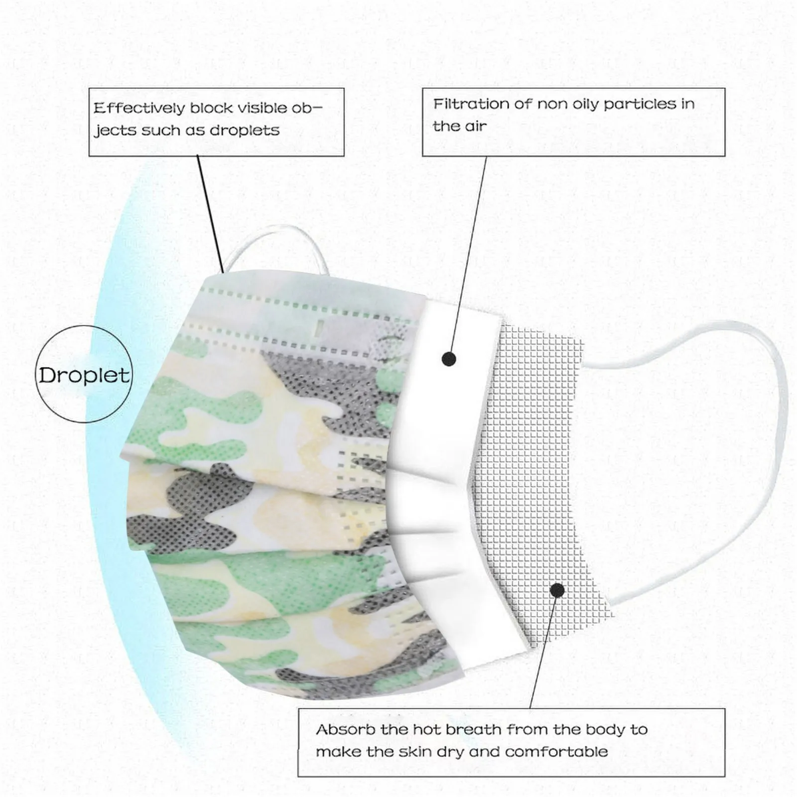 50 шт., детская маска, камуфляжная расцветка, одноразовая маска для лица, 3 слоя, Ушная петля, покрытие для лица, маска для лица, Masque maseczki ochronne