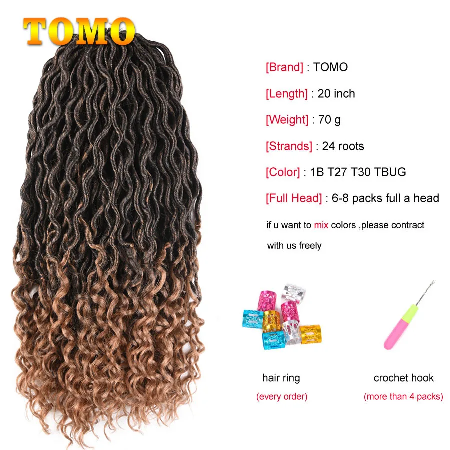 TOMO искусственные локоны в стиле Crochet волосы волнистые дреды, косы с кудрявыми концами Омбре коричневый цвет мягкие предварительно петли синтетические плетеные волосы 20 дюймов
