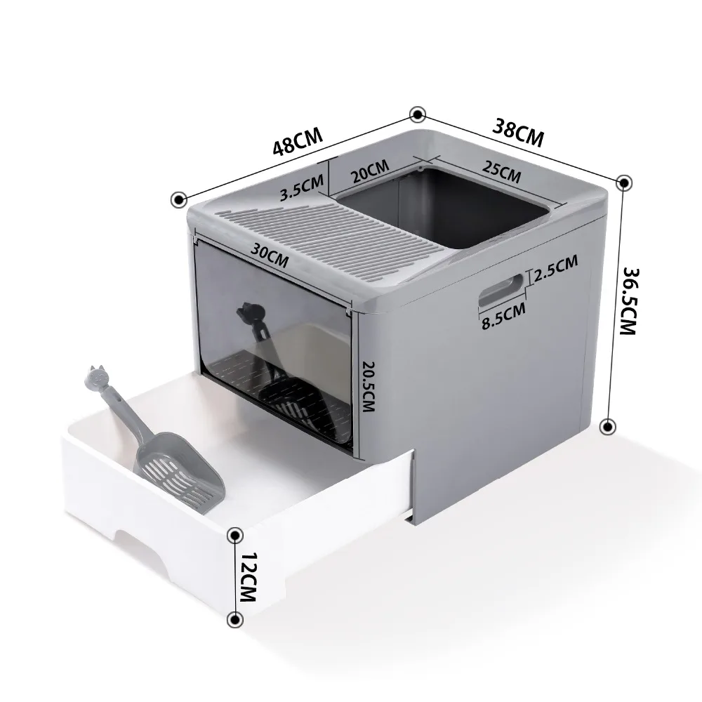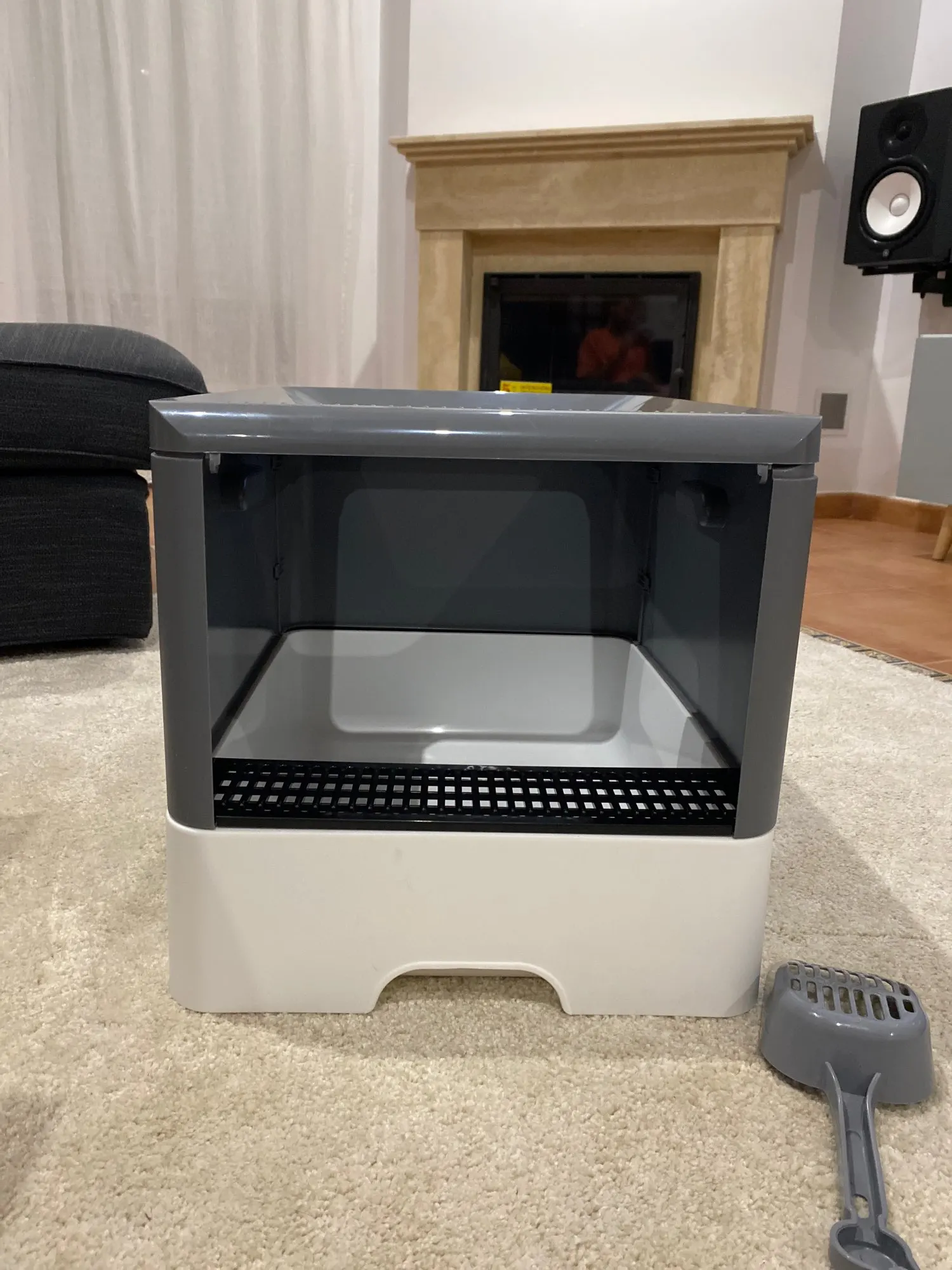 Домик-лоток очень понравился, но и моя кошка боится дверки, сняли, ходит без проблем, наполнитель больше не разбросан) лоток очень большой, а сам домик внутри маловат, для крупных котов (мейнкунов/бенгалов) будет тесновато.