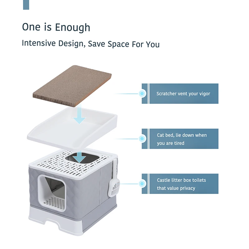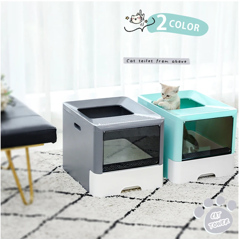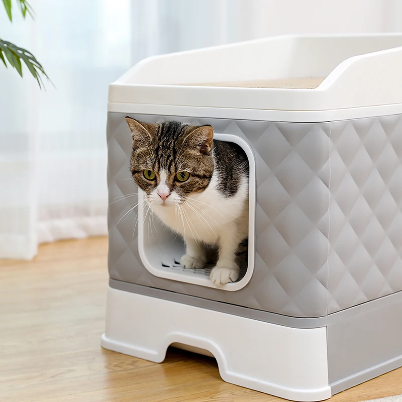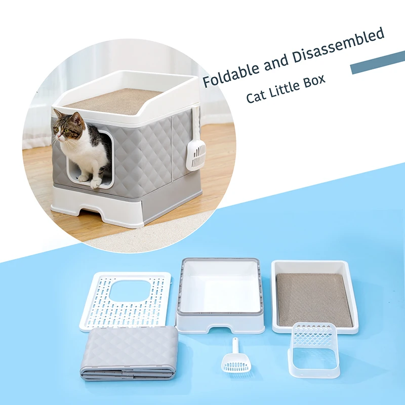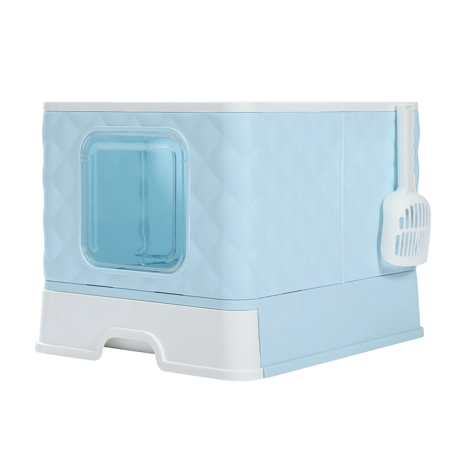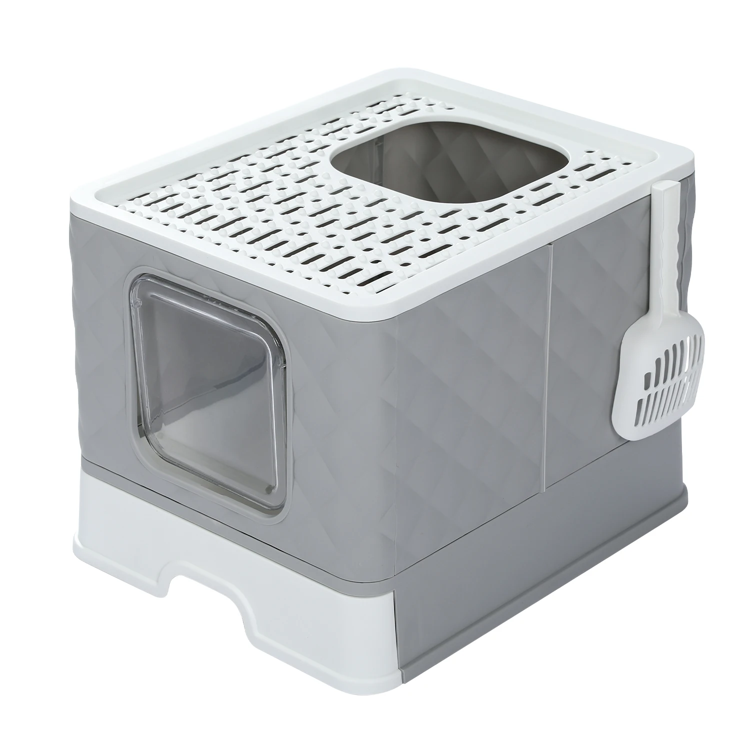 Большой складной лоток для кошек, кастрюля с крышкой, горшок для кошек входного типа, товары для кошек с ПЭТ пластиковым совком, 3 цвета