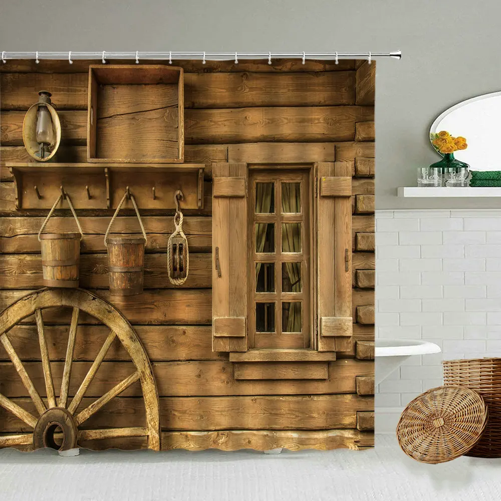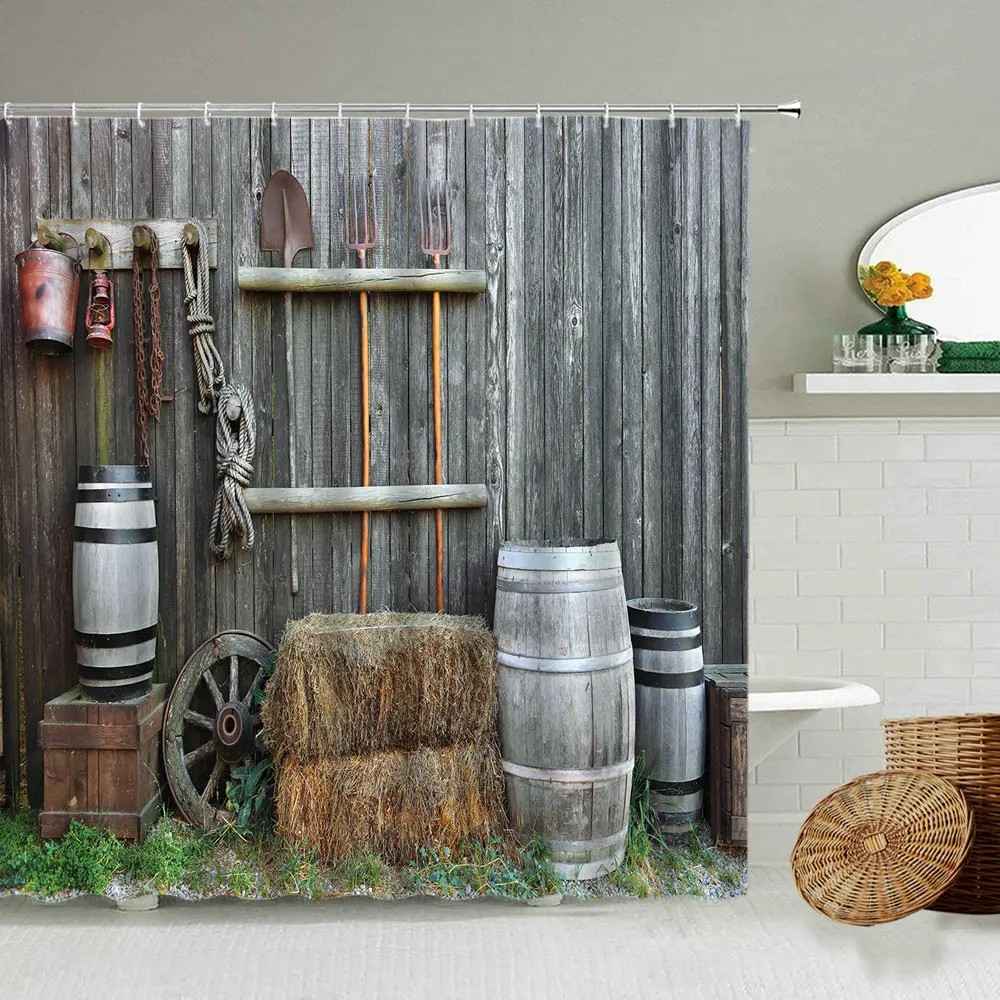 Американский провинциальный город фермы сарая душ Шторы старомодные античный деревянный магазин вагонные колеса водонепроницаемые шторы для ванной