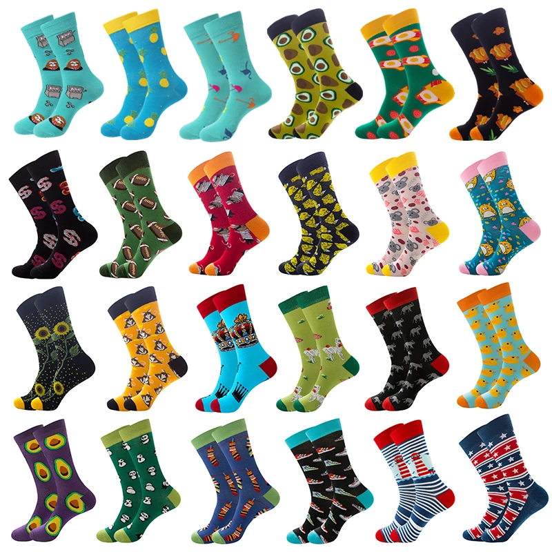 Хлопок Для мужчин носки Harajuku Прохладный Красочные забавные с рисунком панды животных фрукты авокадо маска ленивого летучая мышь носки для хип-хопа для мужской подарок