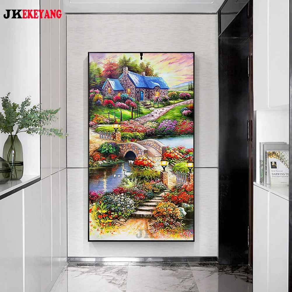 Большой 5D Diy алмазная живопись деревня река Алмазная вышивка-мозаика стразами вышивка крестиком Y4206