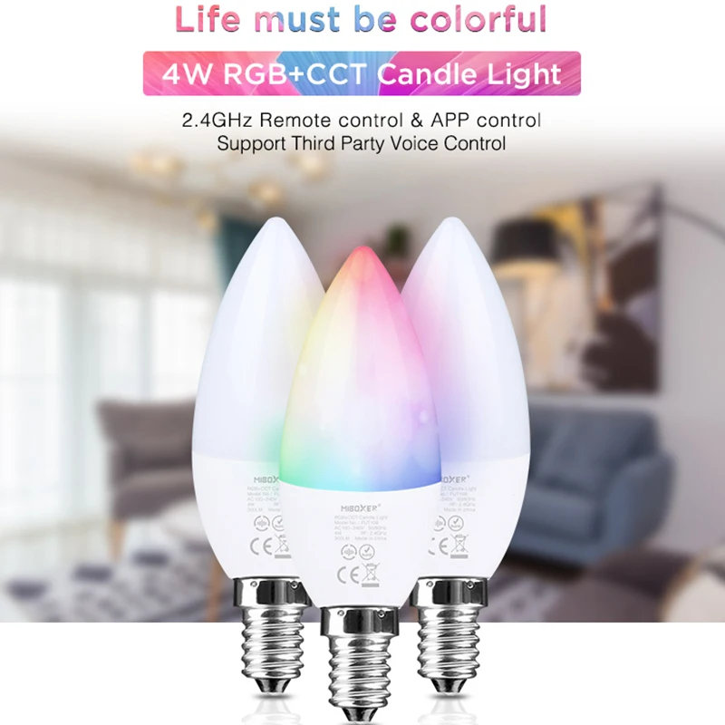 Новый Miboxer 4 Вт E14 RGB + CCT светодиодный лампы в форме свечи BulbFUT108 2700K-6500K светодиодный прожектор лампа для Гостиная освещение