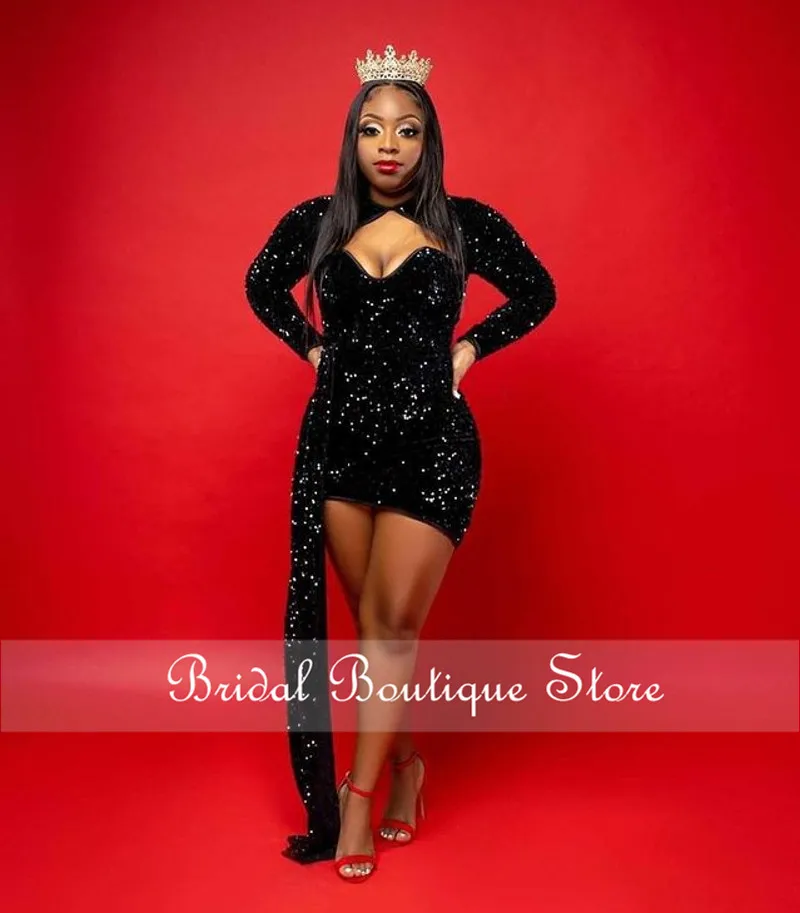 Saprkly блестки короткое черное платье для выпускного вечера 2022 Aso Ebi платье для вечеринки на день рождения мини-платье для выпускного вечера платье на заказ