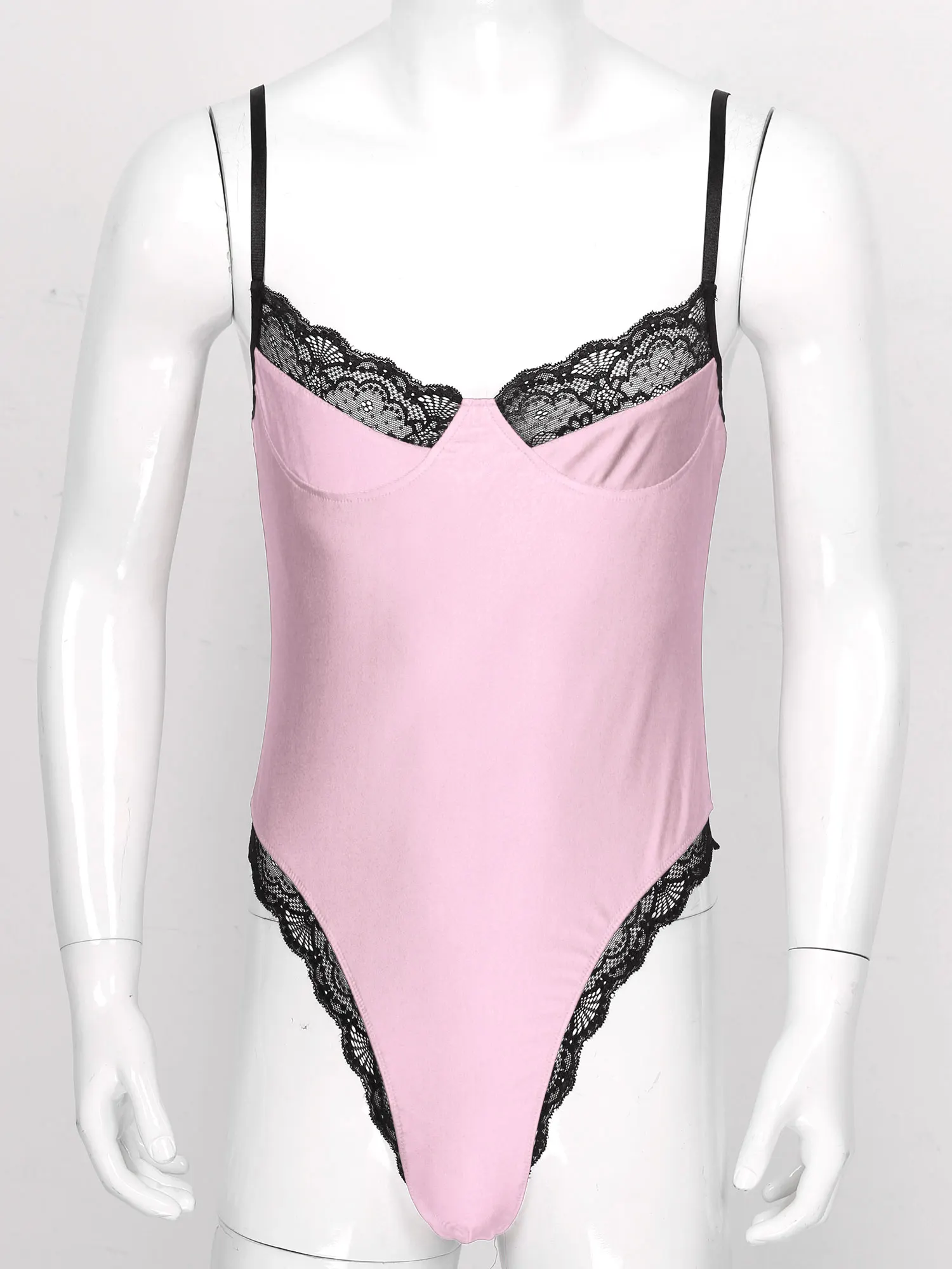 Мужские Сексуальный костюм в обтяжку на тонких бретельках, атласные кружевные обрезки, цельные мужские нижнее белье Sissy, мужские бандажи для геев