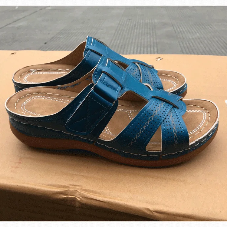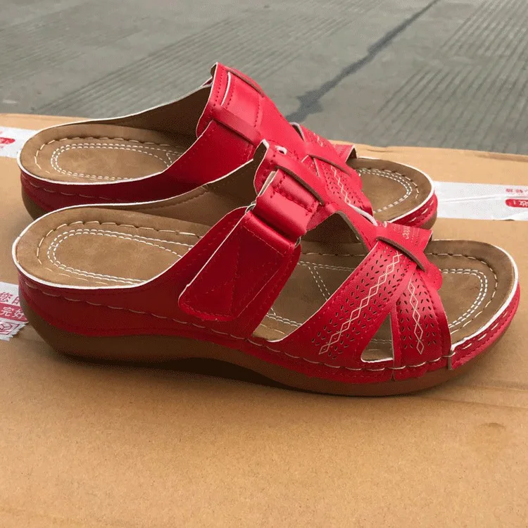 Летняя женская обувь; Премиум класса; Ортопедические сандалии с открытым носком; Винтажные Нескользящие дышащие кожаные повседневные женские туфли на платформе в стиле ретро