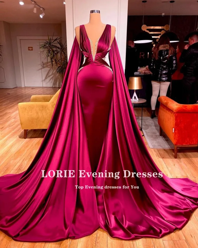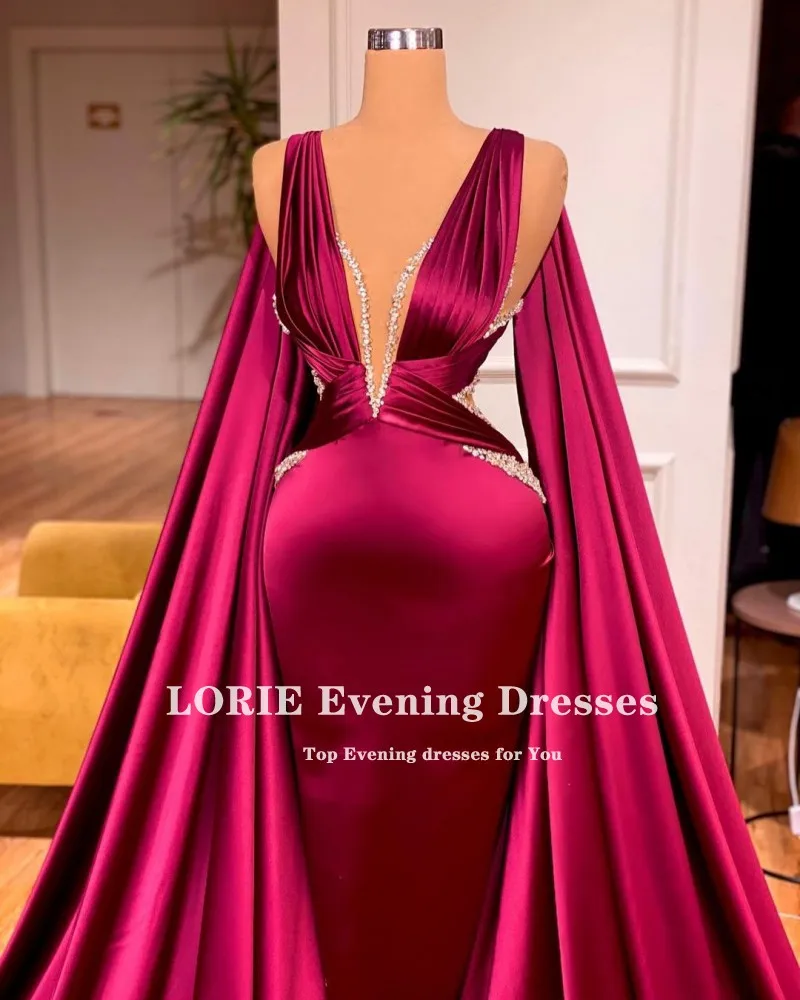 LORIE арабские вечерние платья с длинным V-образным вырезом с рукавами-крылышками из бисера Русалка атласное официальное платье для выпускного вечера Вечернее платье abendkleider 2021 Дубай