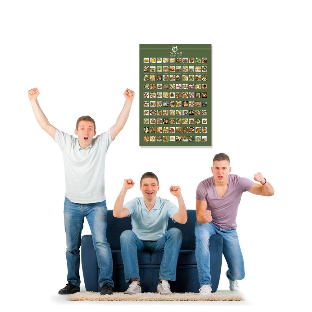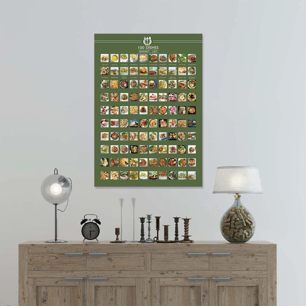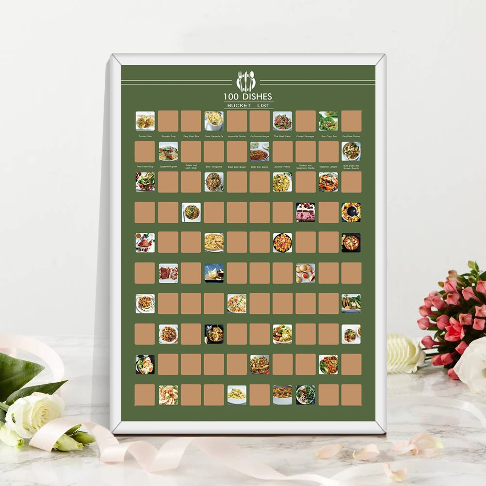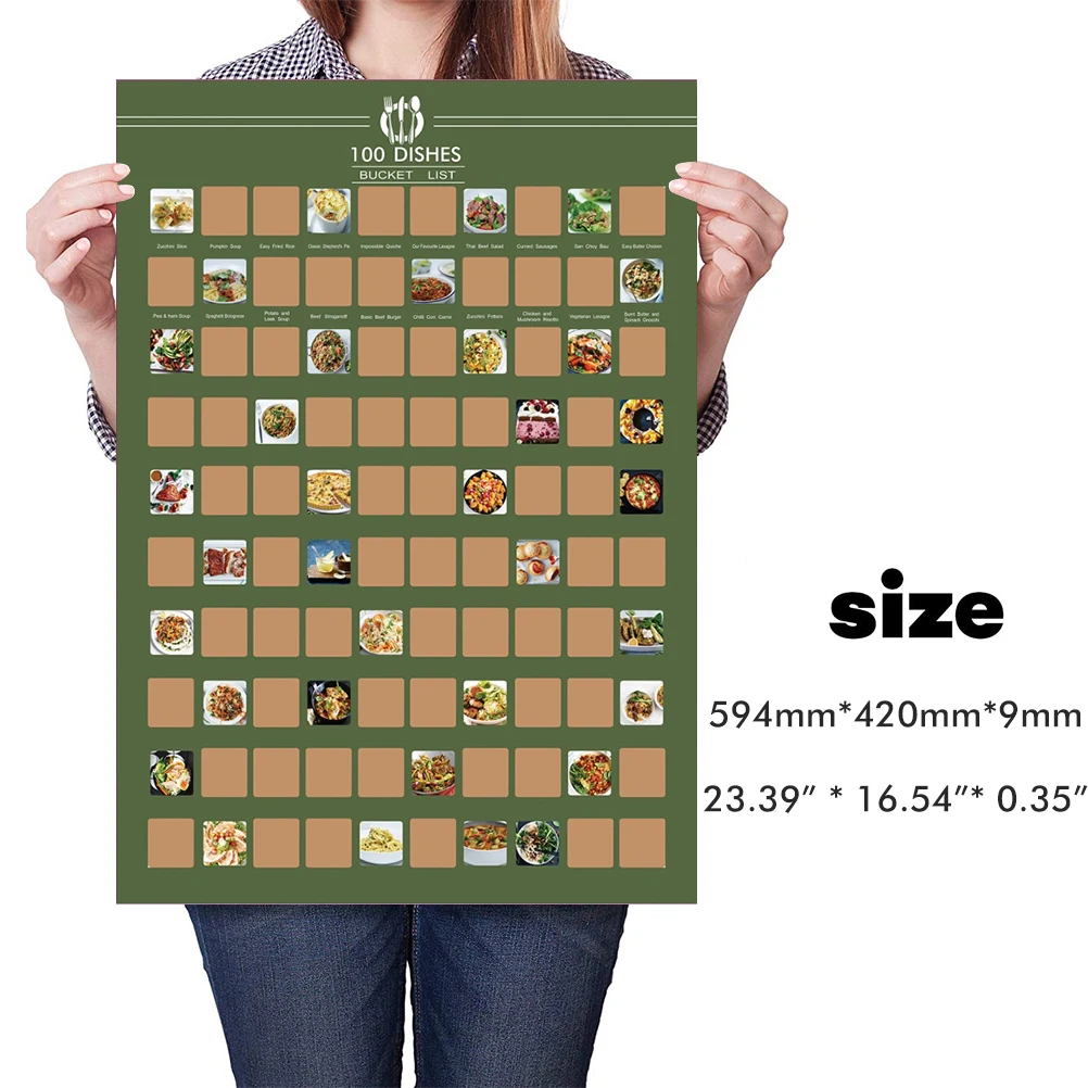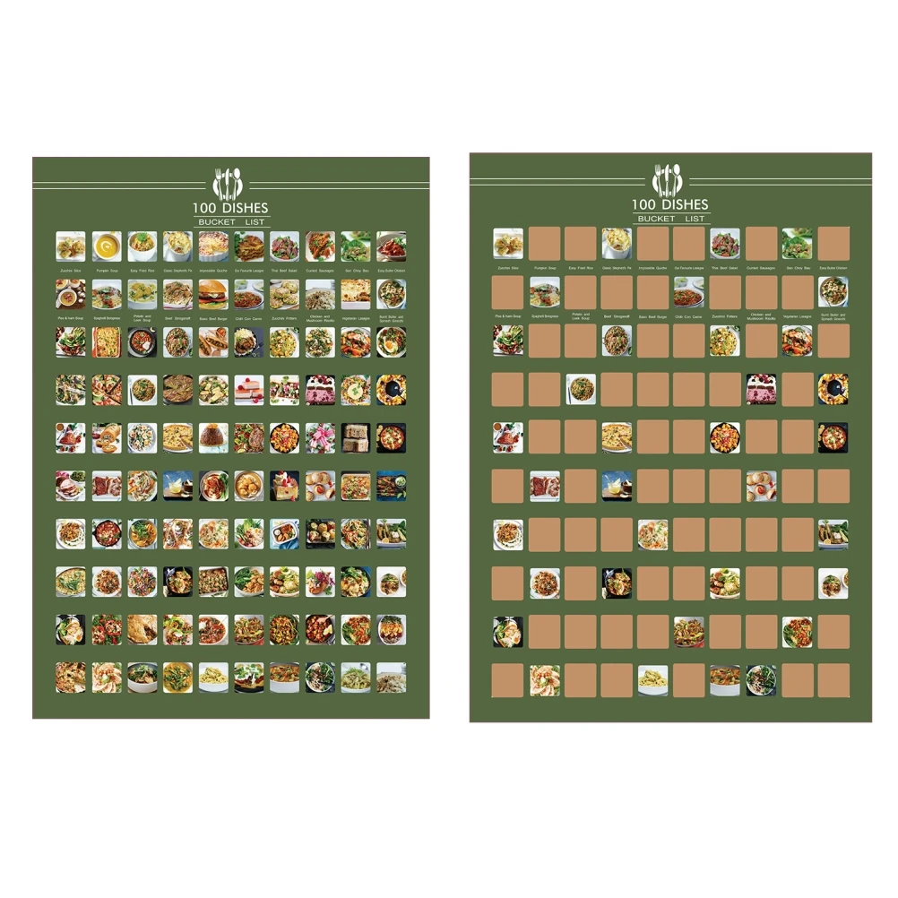 Топ 100, плакат с изображением вкусной еды, постер с изображением списка царапин и меню, настенный декоративный плакат, подарок для любителей приготовления пищи, Настенная Наклейка