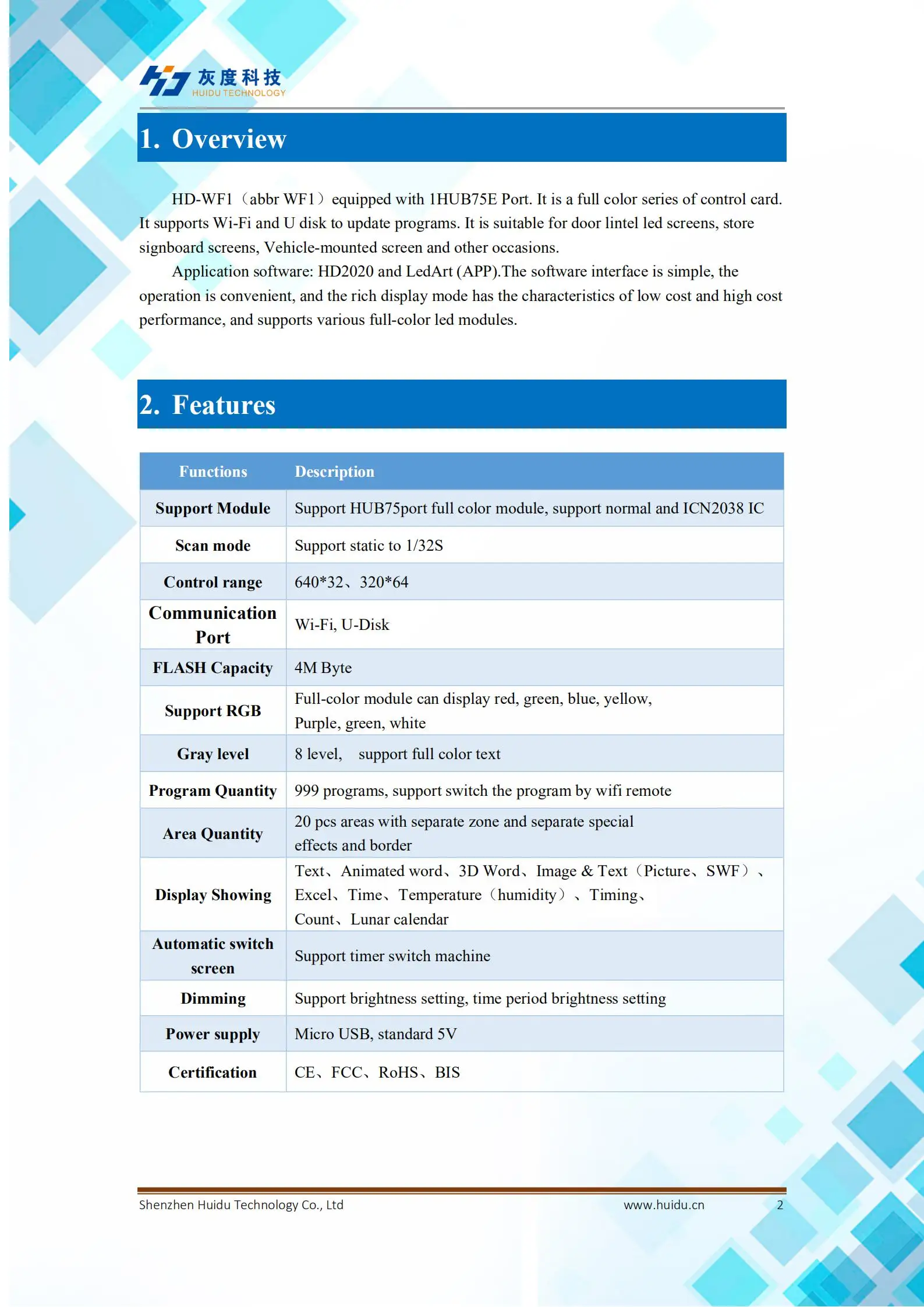 HD-WF2 Huidu, полноцветный, семь цветов, маленький светодиодный дис...