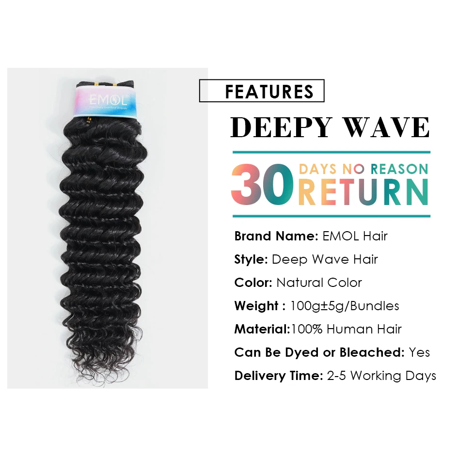 Hair Material:Indain Deep Wave Human Hair Bundles