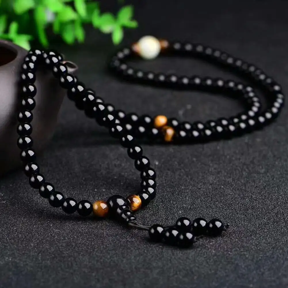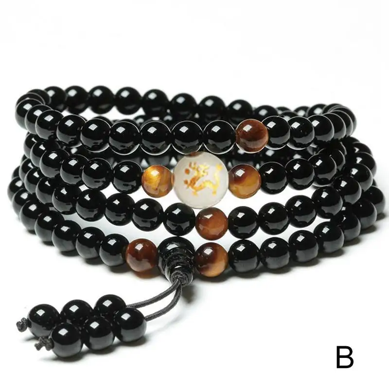 Обсидиан резьба браслет Дракон тигровый глаз каменные бусины Будда четки светятся в темноте уникальный подарок