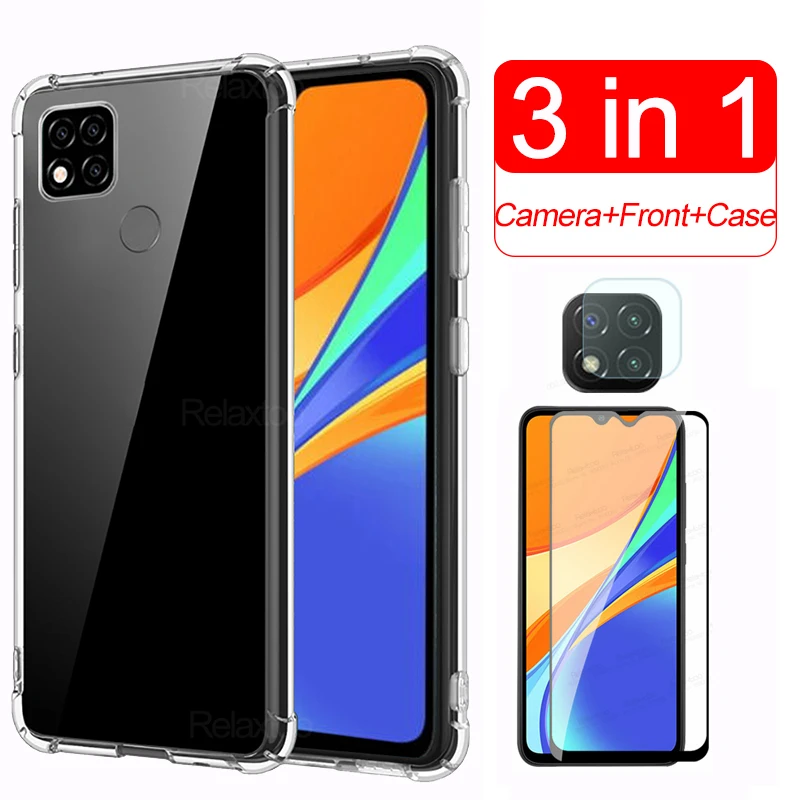 Прозрачный силиконовый чехол для Xiaomi Redmi 9C NFC 9A Note 9s 8 9 Pro 8T 8A Mi 10T Lite Poco X3 M3 камера + Переднее закаленное стекло
