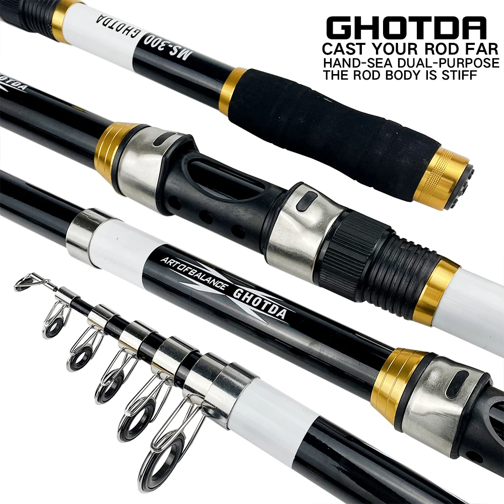 Портативная телескопическая удочка из углеродного волокна для пресной и соленой воды, 2,1, 2,4, 2,7, 3,0, 3,6 м