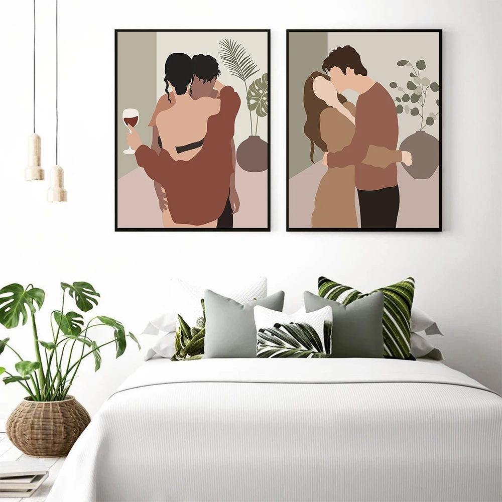 Минималистичные постеры и принты для пар, абстрактная иллюстрация, портрет, настенное искусство, холст, живопись, картины, Современное украшение для дома