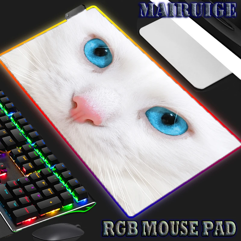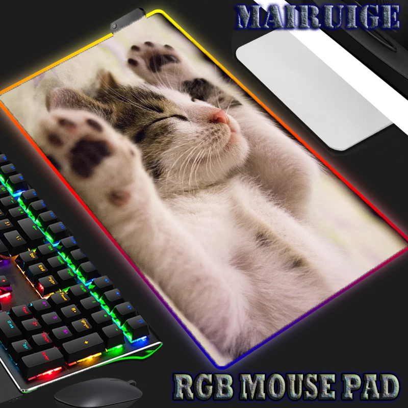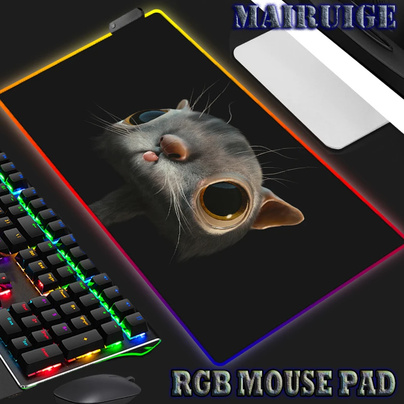 Большой игровой коврик для мыши RGB с котенком, игровой компьютерный коврик для мыши с милым котом, коврик для мыши XXL, Настольный коврик с подсветкой, коврик для клавиатуры