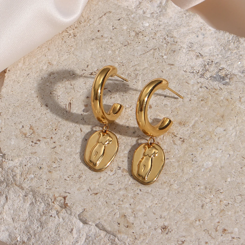 Женские серьги-кольца из нержавеющей стали, с подвеской в виде лица