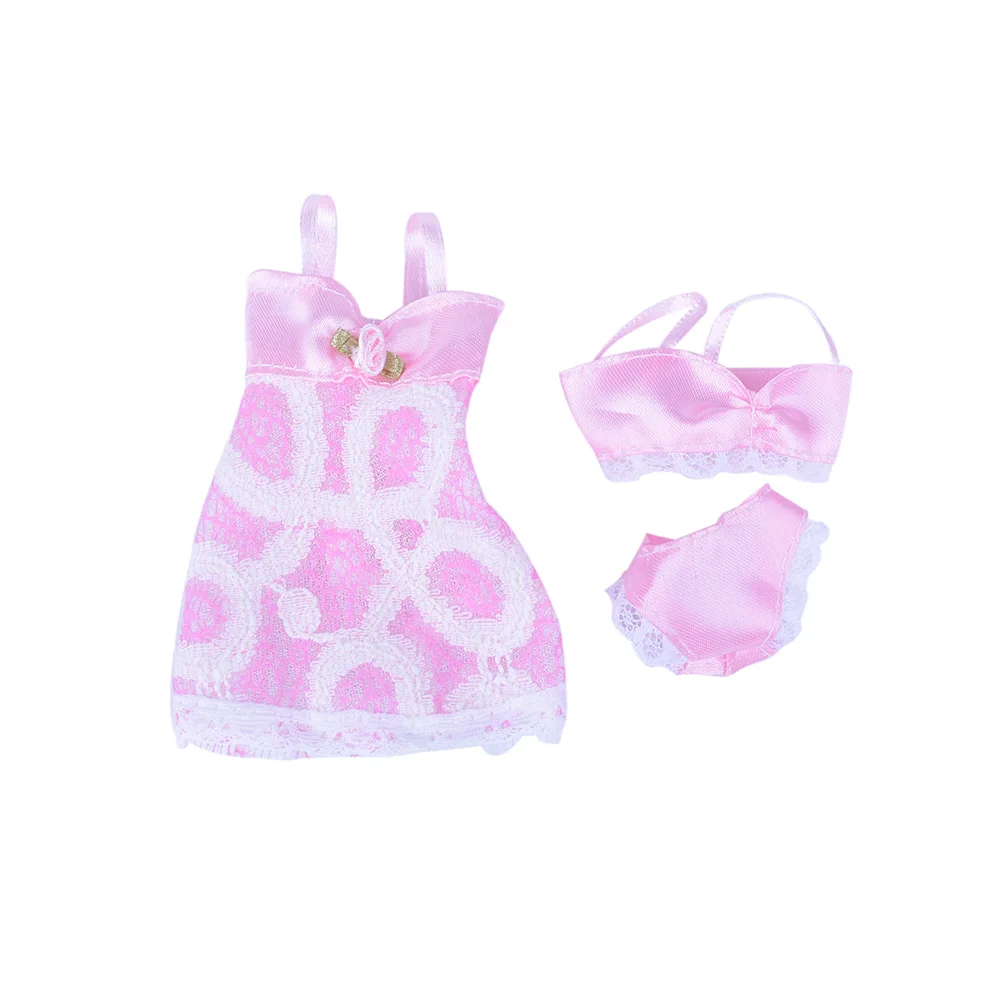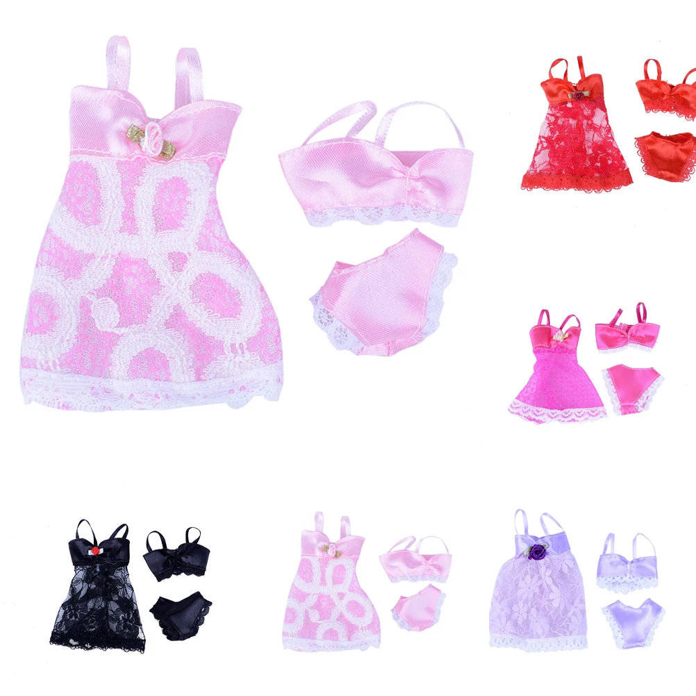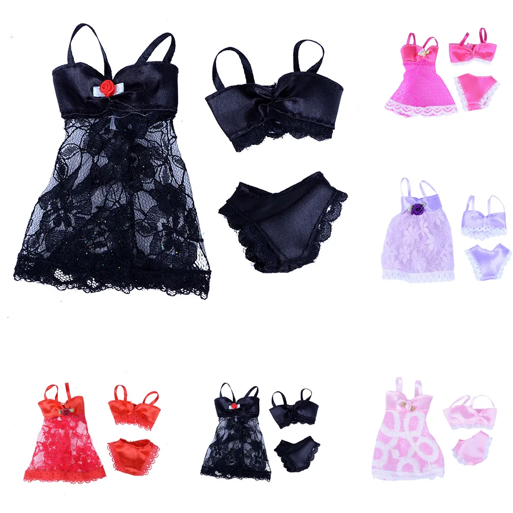 Новинка; 1 комплект = 3 шт. (платье + бюстгальтер + трусы) сексуальные купальники для девочек кружево Ночное платье для кукольная Пижама Нижнее белье Одежда мягкого плюша; Аксессуары для куклы