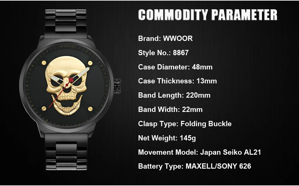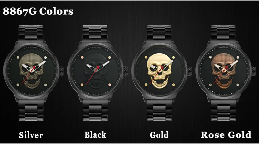 Мужские часы WWOOR 2021, часы с черепом, из нержавеющей стали, золо...