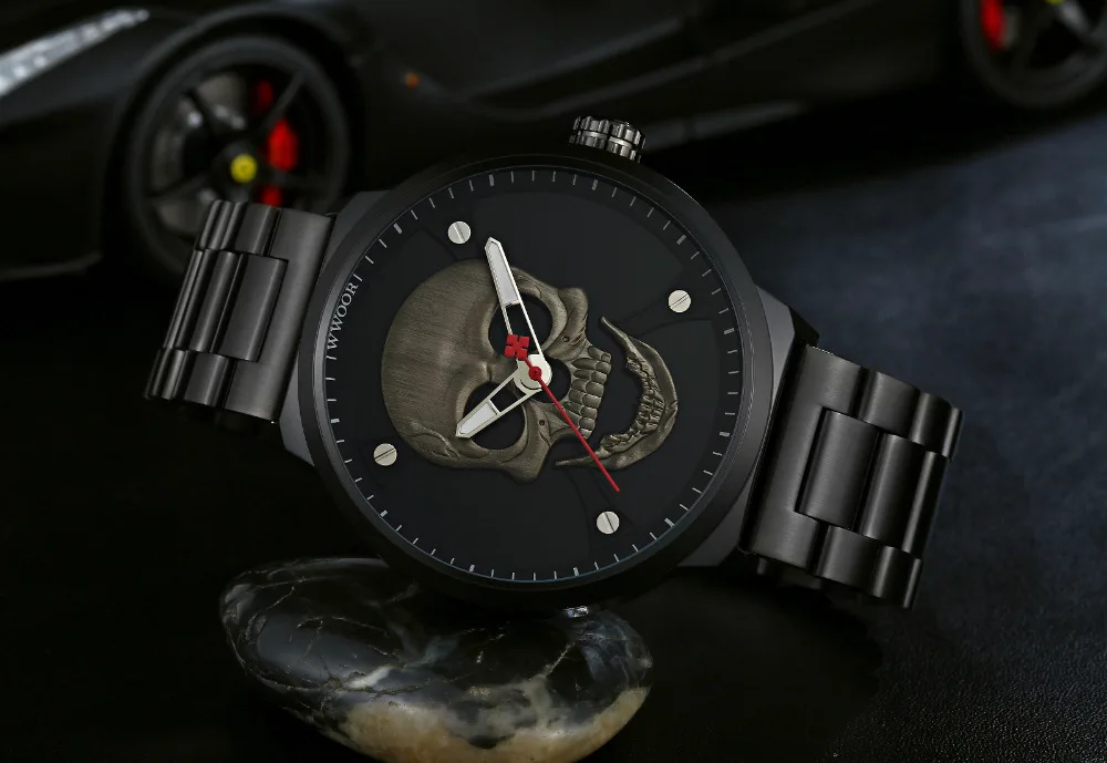 Часы наручные мужские с черепом, модные спортивные брендовые Роскошные водонепроницаемые кварцевые, из нержавеющей стали, креативные
