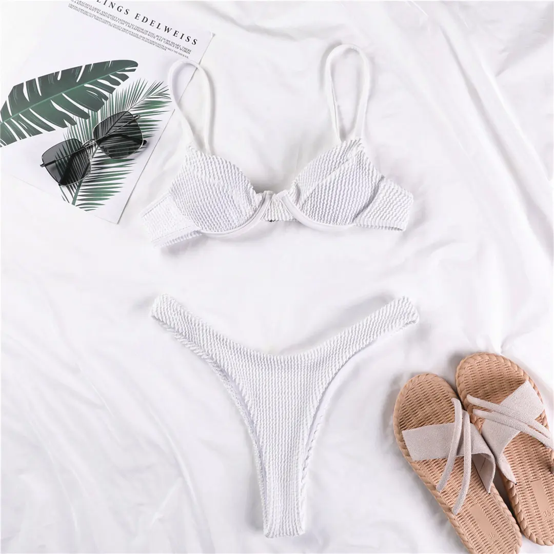 Новинка, бикини в рубчик, с высоким вырезом, купальник, женская одежда для плавания, Женский комплект бикини из двух предметов, купальный костюм V2697B