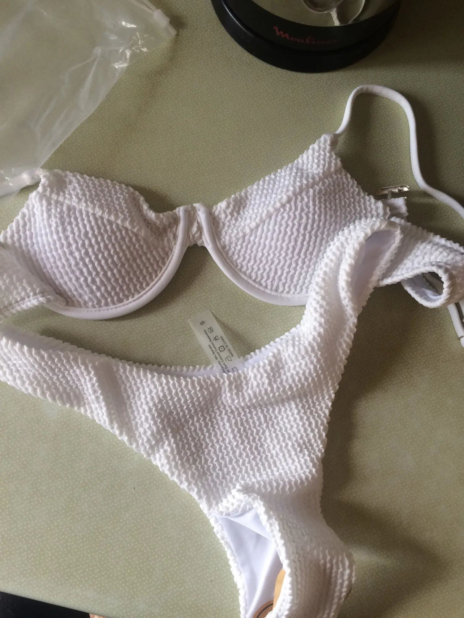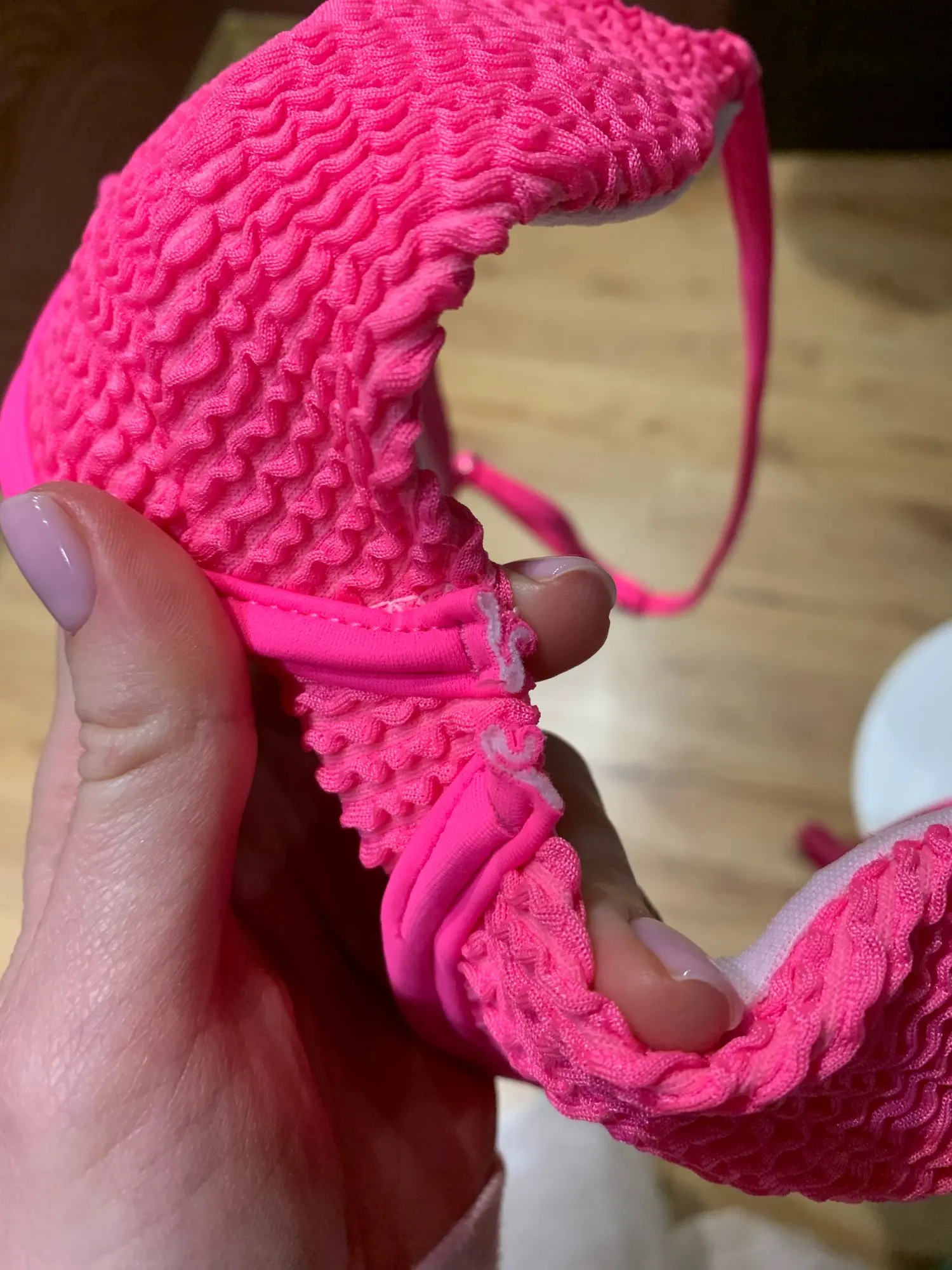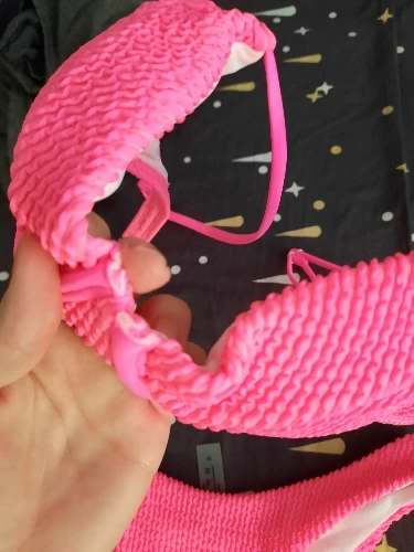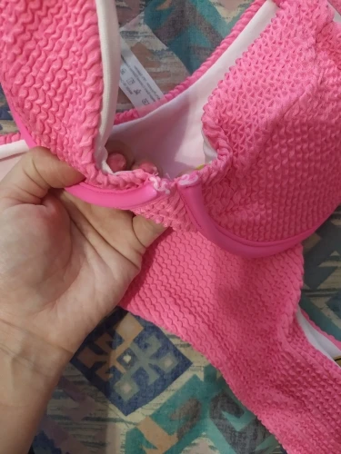 Необработанный шов верх косточек, трусы большие, высокая посадка, лиф очень маленький, немного плющит грудь, даже если убрать вкладыш