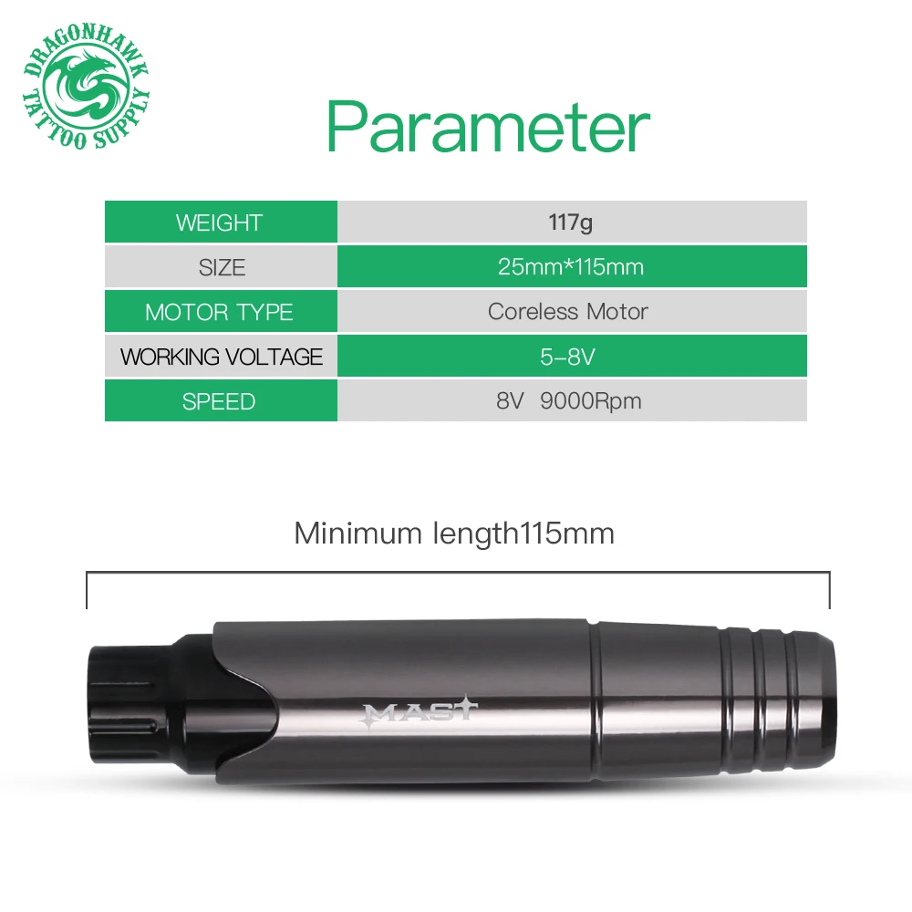 Тату-ручка DragonHawk Mast P10, ротационная машинка для перманентно...