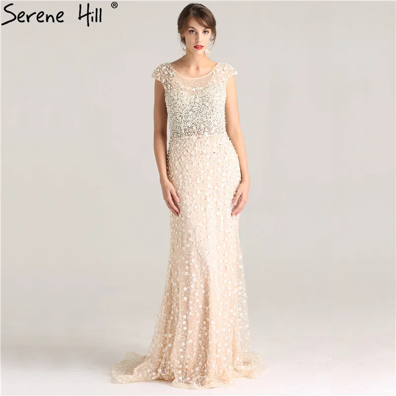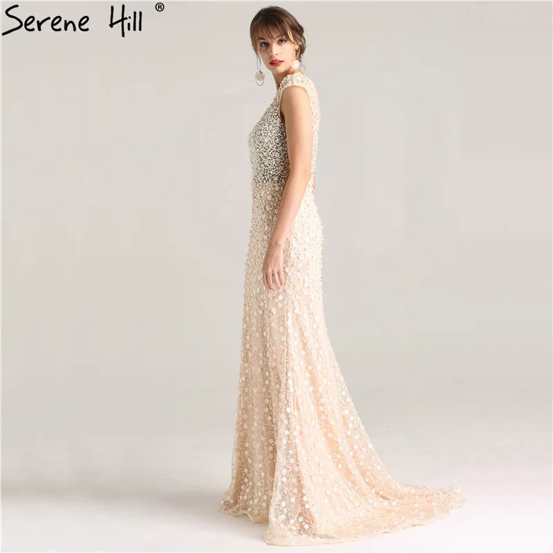 Перламутровое роскошное сексуальное вечернее платье без рукавов с кристаллами, элегантное модное вечернее платье из тюля русалки, настоящая фотография LA6222