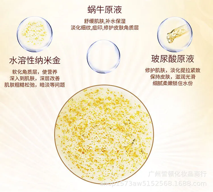 Название продукта: 24K золото лист сырой жидкостиХарактеристики продукта: 10 мл/бутылкаСостав продукта: база свеклы, морские водоросли больших листьев, глицерин, гиалуроновая кислота натрия, золото и т. Д.产品功效: увлажняет кожу, увлажняет и увлажнения, улучшить кожу грубой, сухой, увлажняющий кожу, медленное старение кожи, сглаживает морщины, таким образом, чтобы кожа нежная, белый, лоснящегося материала.Срок годности: 24 月Целевая аудитория: 任何肤质,特别是干燥暗哑,需保湿亮 、 多皱老化肌肤 。Обратите внимание: 敏感肌肤请先在耳后试敏 。: После очистки лица нанесите соответствующее количество этого продукта на лицо и аккуратно протрите его до впитывания.保存方法:置于阴凉干燥处,避免阳光直射与高温 。Этот продукт имеет место, может быть оптовая продажа, также может сделать собственную обработку на заказ