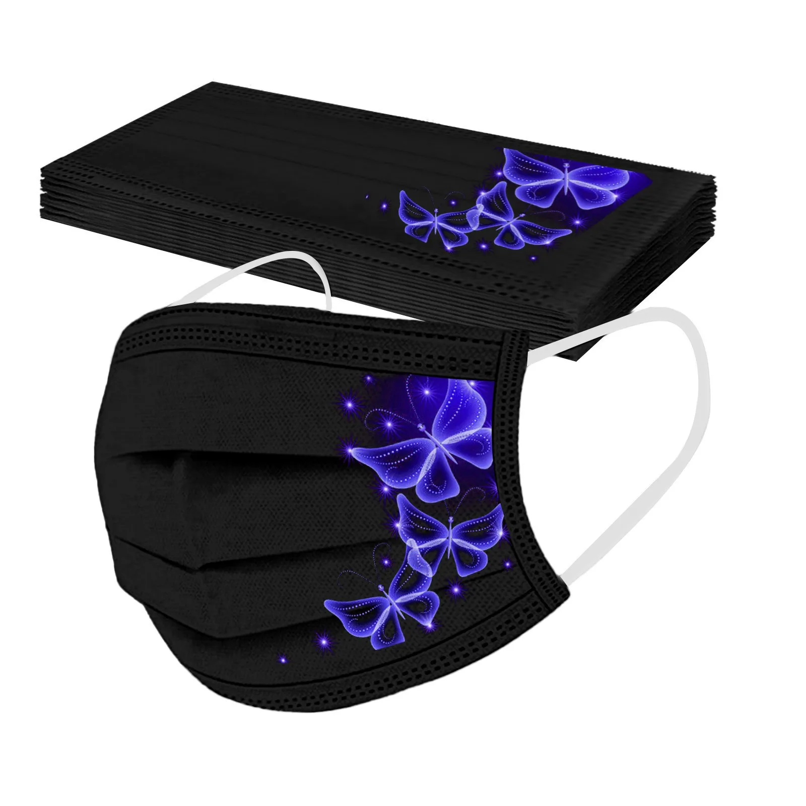 10100 шт для взрослых с бабочкой с принтом маски унисекс одноразовые защитные маски для лица 3ply петли уха дышащая Защитная черная маска для дайвинга