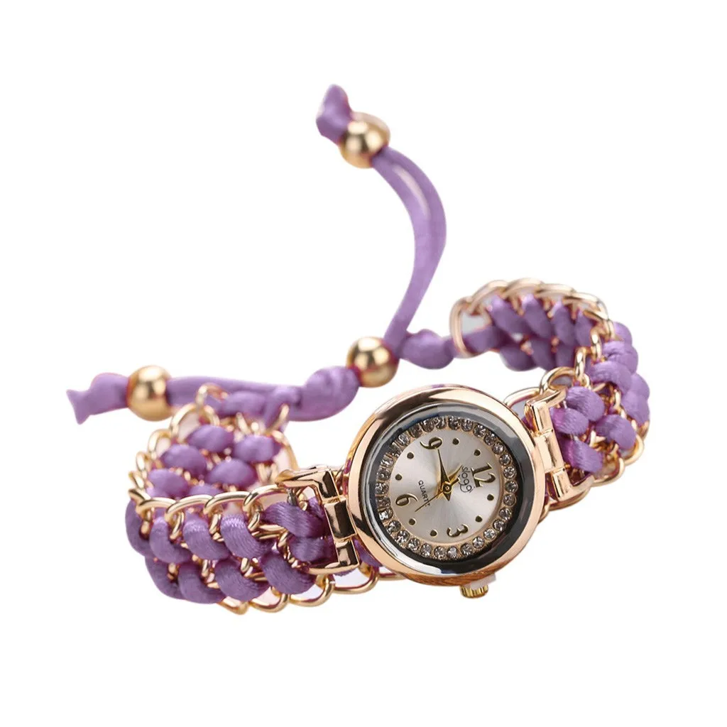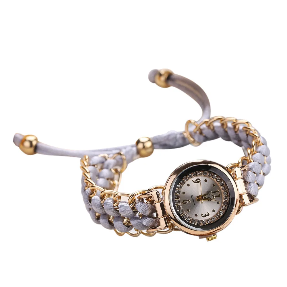 1 шт. женские часы-браслет стразы ручной работы вязаная веревка цепочка намотка Аналоговый кварцевый механизм эластичные модные наручные часы