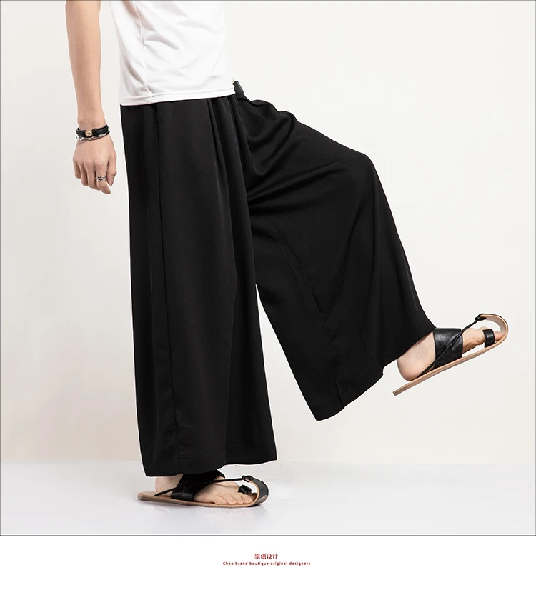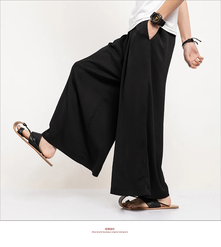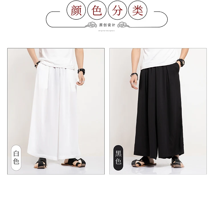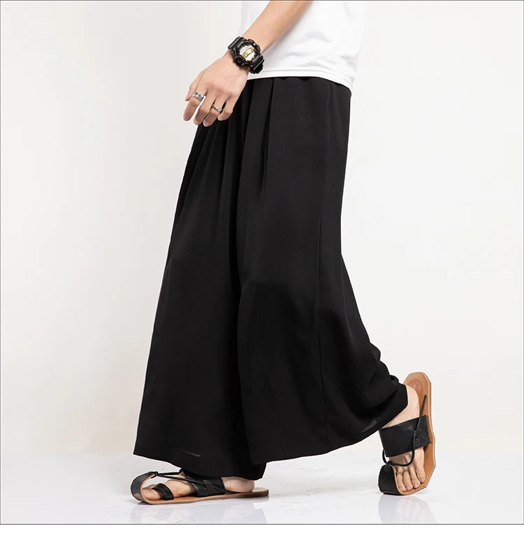2021 летние белые уютные мягкий лен хлопок Широкие штаны мужские черные хакама японская одежда китайский Восточный костюм большого размера