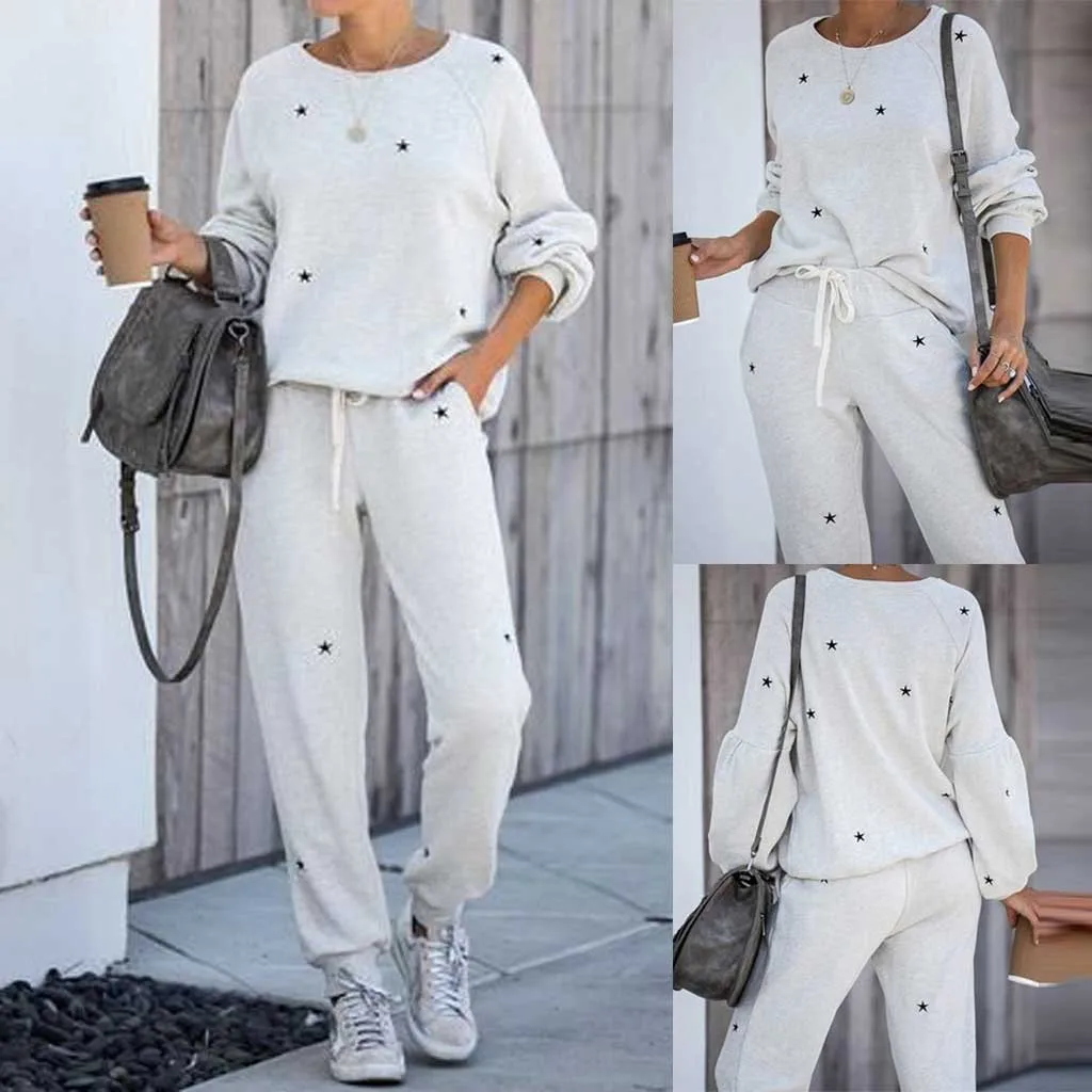 Женский комплект из 2 предметов, спортивный костюм с капюшоном, штаны с принтом пентаграммы, одежда для отдыха, спортивный костюм для бега, домашняя одежда из 2 предметов