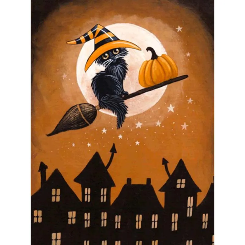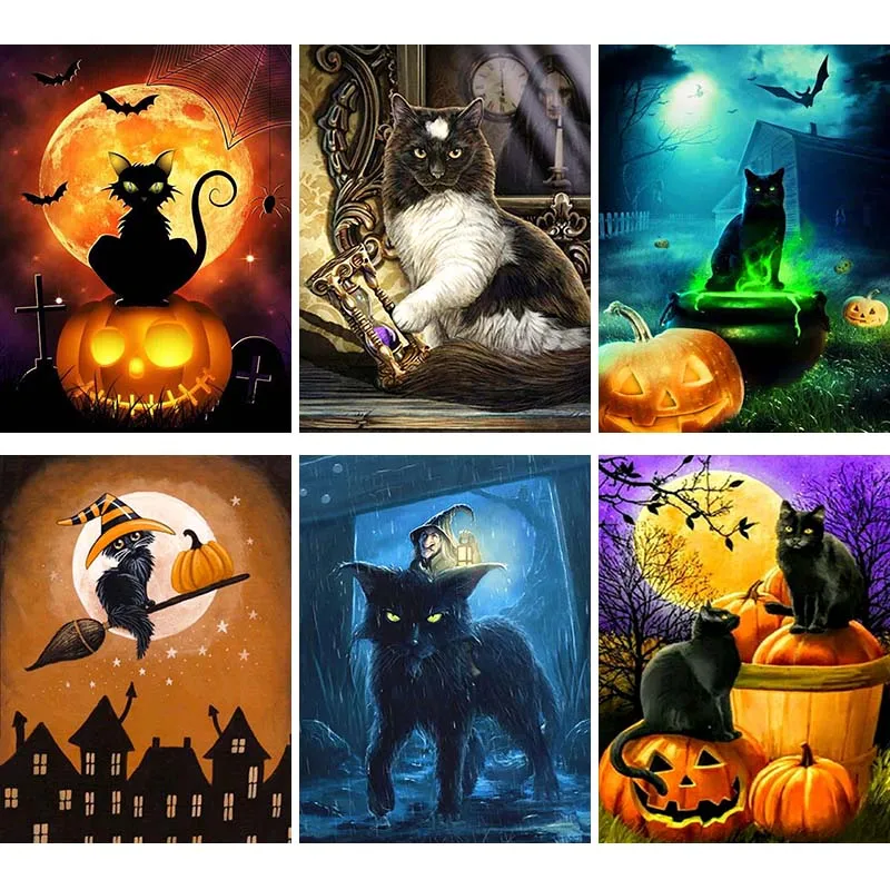Алмазная живопись, Хэллоуин, тыква, фонарь, 5D, домашний декор, Набор для вышивки крестом, вышивка, кошка, ведьма, мозаика, фото Q34