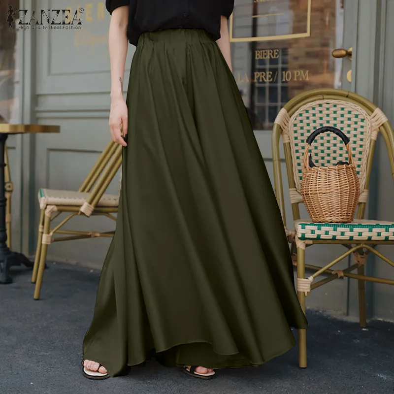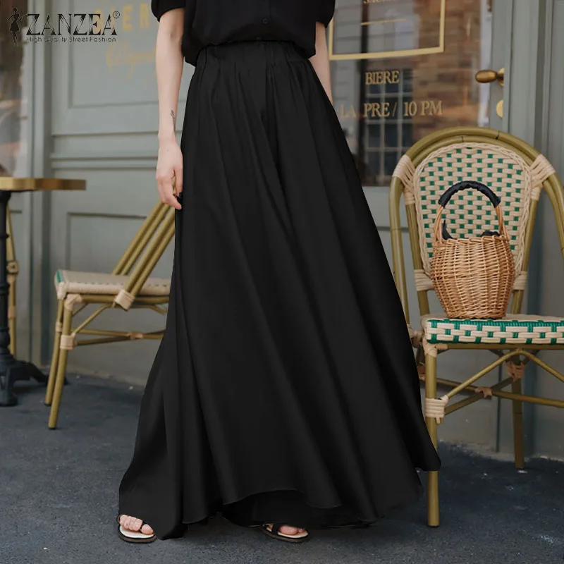 Брюки ZANZEA Женские однотонные с широкими штанинами, Стильные повседневные длинные брюки с эластичным поясом, уличная одежда, весна 2021