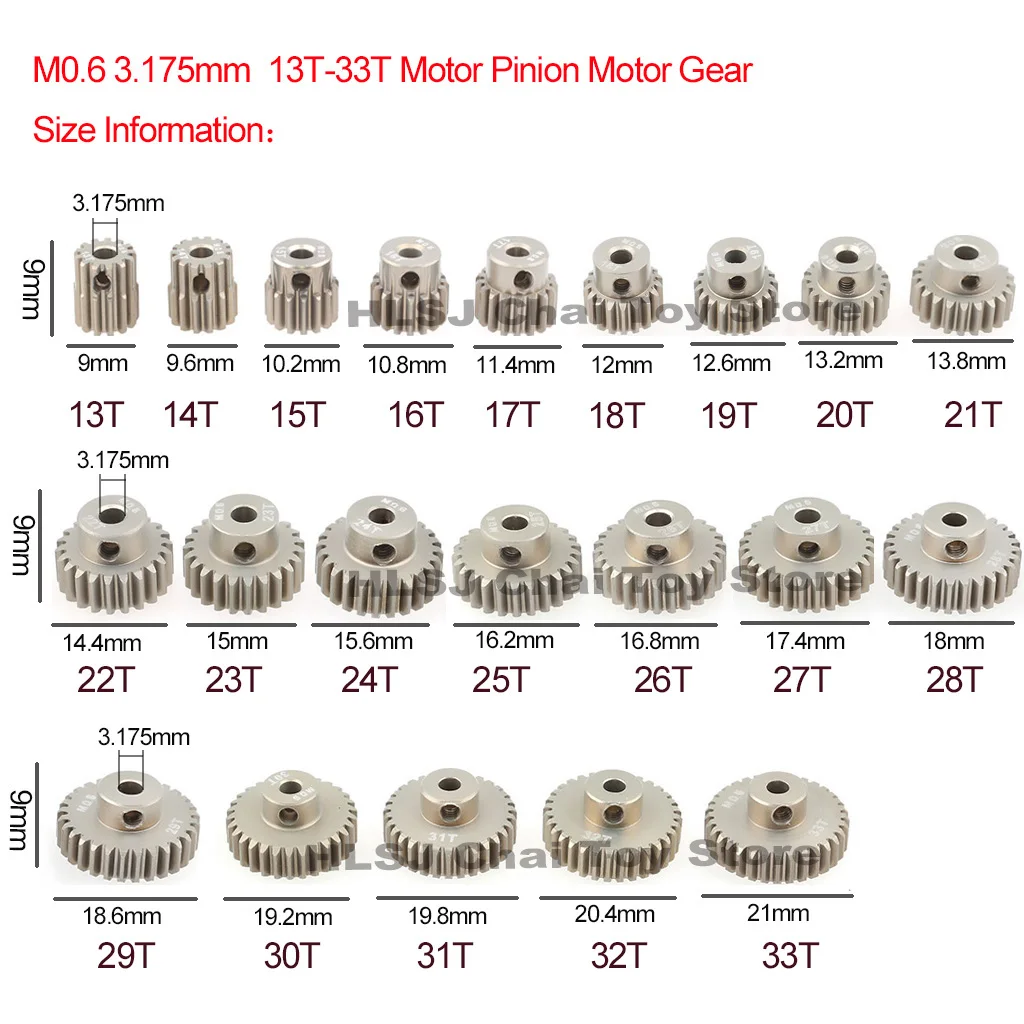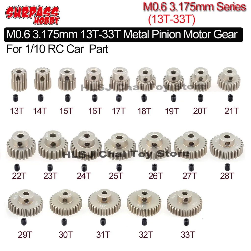 Surpass Hobby 1 шт. M0.6 3,175 мм 13T 14T 15T 16T 17T 18T 19T 20T 21T 22T 23T 24T 25T 26T 27T 28T 29T 30T 31T 32T 33T Металлическая Шестерня двигателя для RC 1/10 двигателя автомобиля