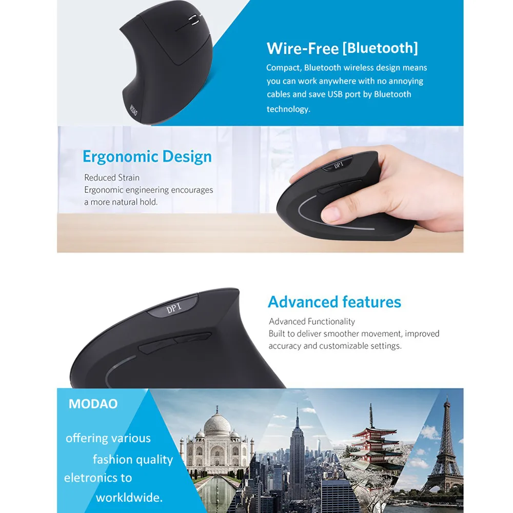 MODAO эргономичный BLUETOOTH Вертикальная мышь с 3 регулируемыми DPI