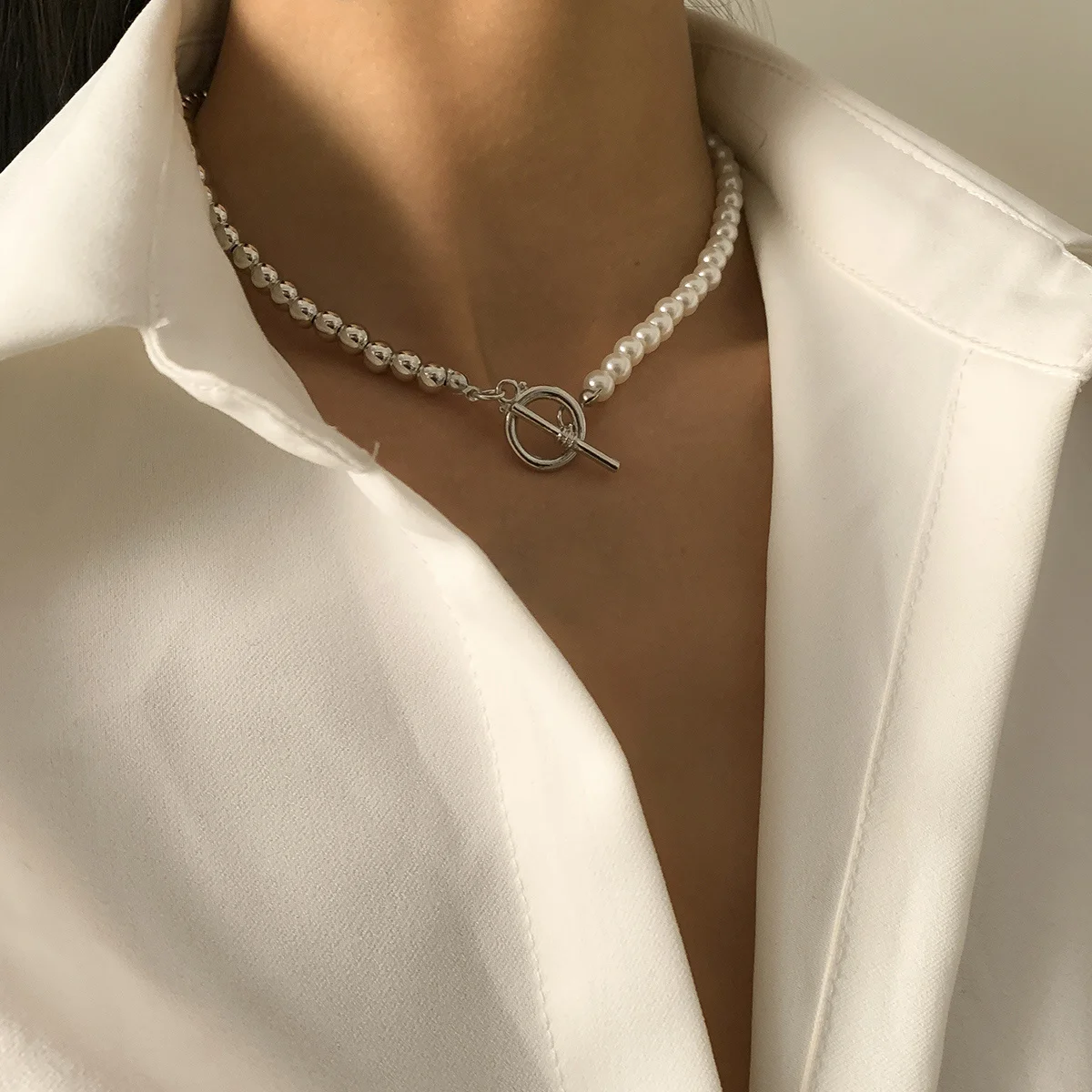 Женское короткое ожерелье-чокер SHIXIN с искусственными жемчужинами, цепочка-чокер золотогосеребряного цвета, ожерелье до ключиц, ювелирное украшение на шею 2021