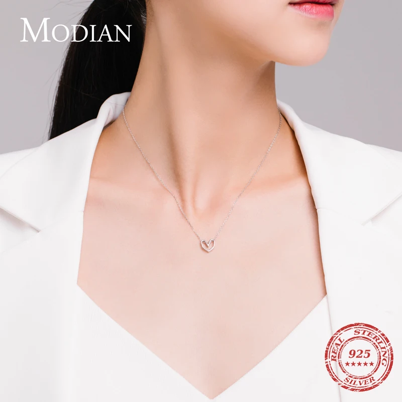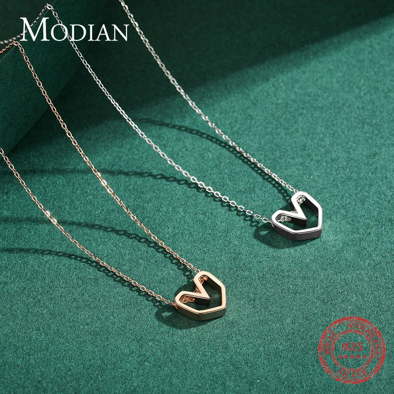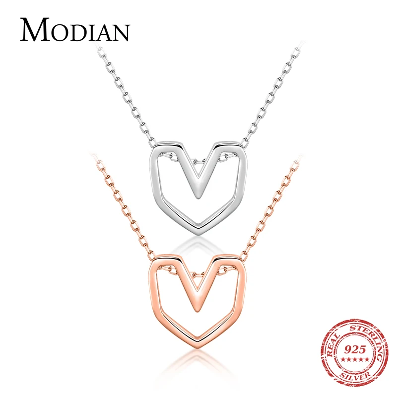 Modian Серебряная линия сердце кулон Настоящее 925 стерлингового серебра розовое золото Цвет Любовь Ожерелья для женщин Свадебные украшения Аксессуары