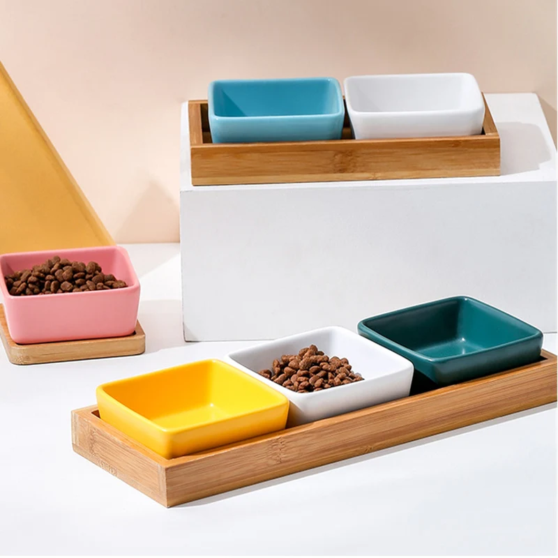 Товары для дома, керамика миска для кошек и собак, блюдо с подставкой из бамбукового дерева, корм для животных, Вода Кормление щенка, держатель для соуса, закусок