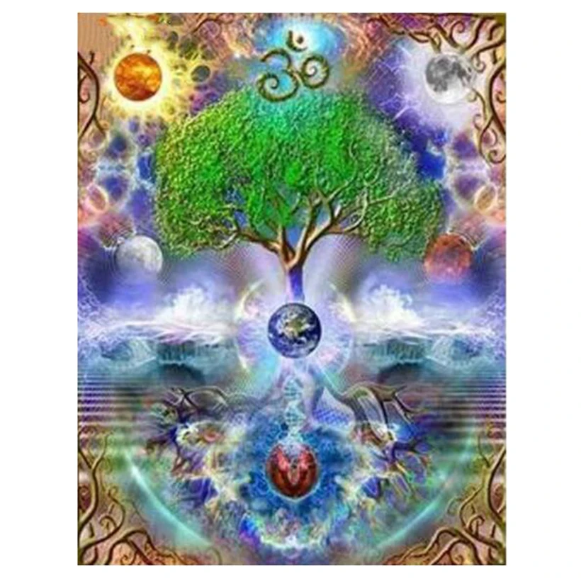 5D Diy круглая Вышивка Дерево жизни пейзаж мозаика стразы ремесла вышивка крестиком алмазная живопись украшение дома FH734