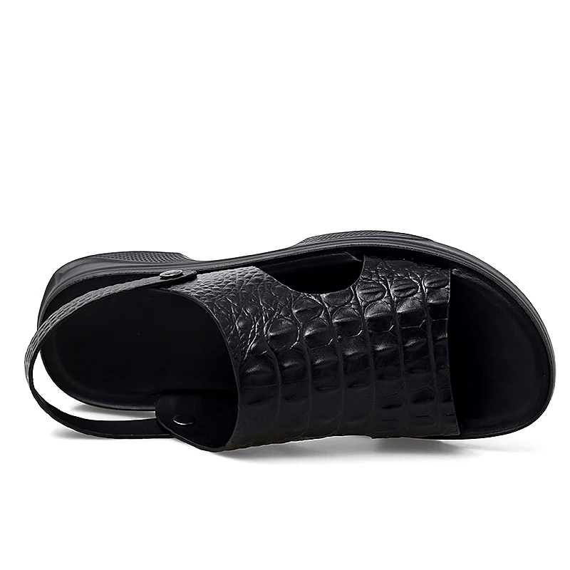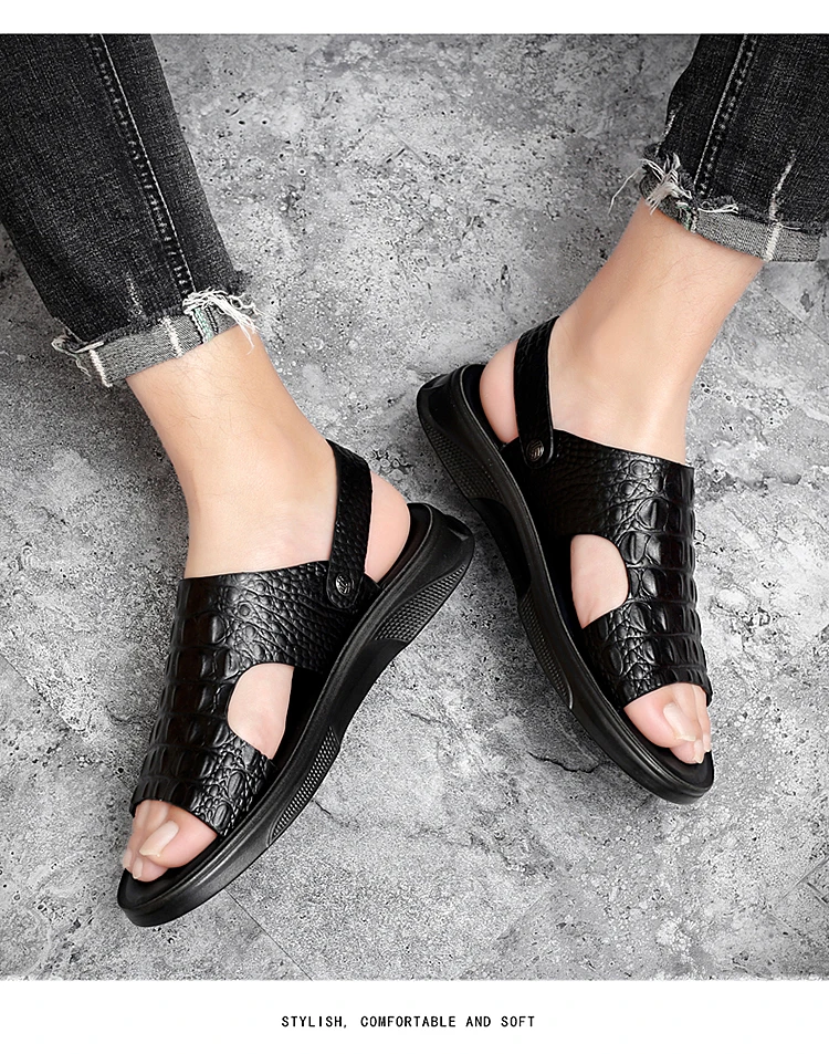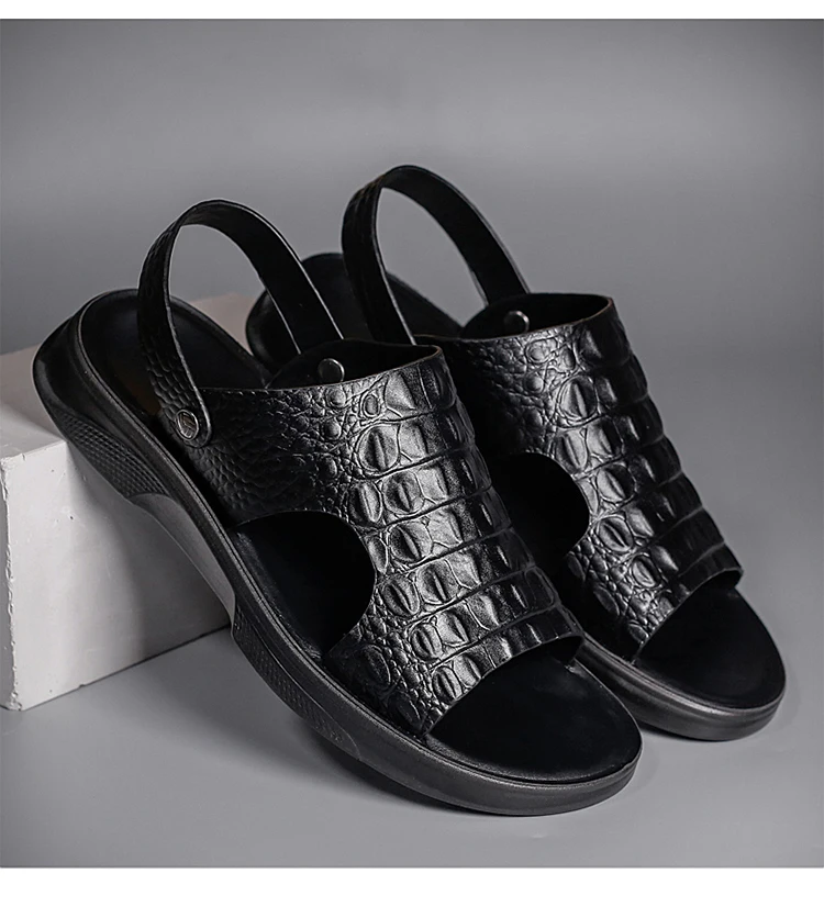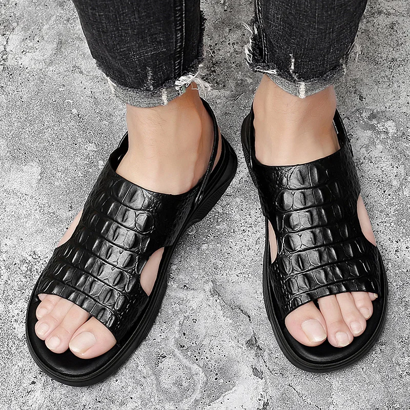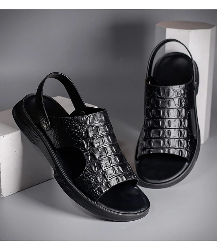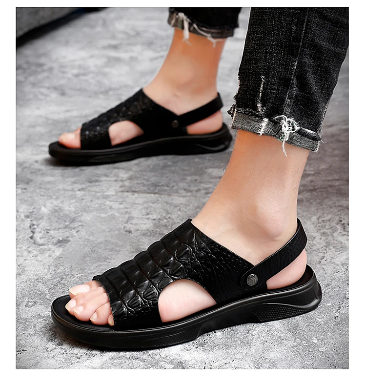 Оригинальный дизайн 2021 лето из натуральной коровьей кожи на каждый день за пределами Пляжные сандалии для мужчин; Тапочки из крокодиловой кожи черного цвета в римском Стиль обувь