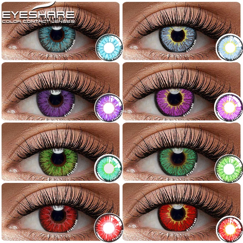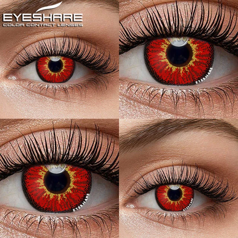 Цветные контактные линзы EYESHARE для глаз, 1 пара цветных линз ed, синие, зеленые, Хэллоуин, искусственные контактные линзы, красота, макияж
