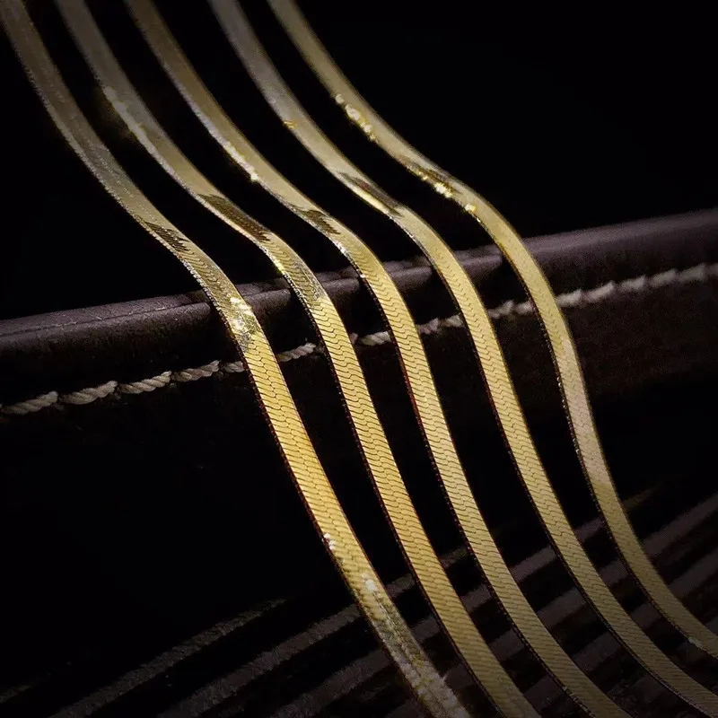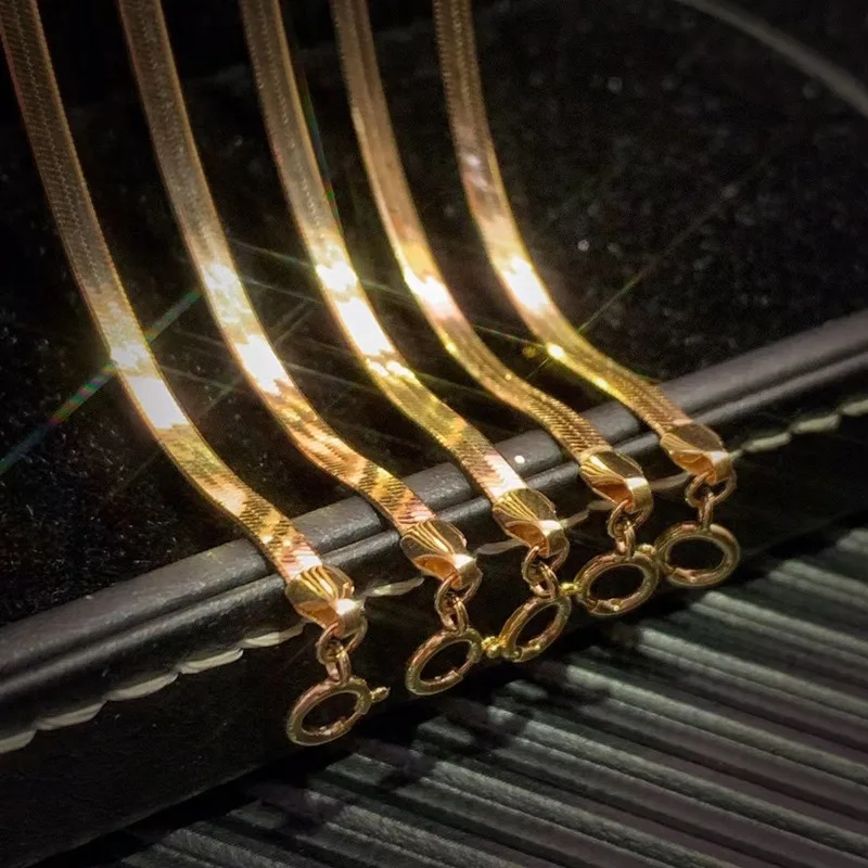 UBESTNICE Мода чистый из 18-ти кратного желтого золота AU750 на плоской подошве со змеиным толстая цепочка колье-Чокер ожерелья ювелирных украшений для Для женщин девочек вечерние подарок
