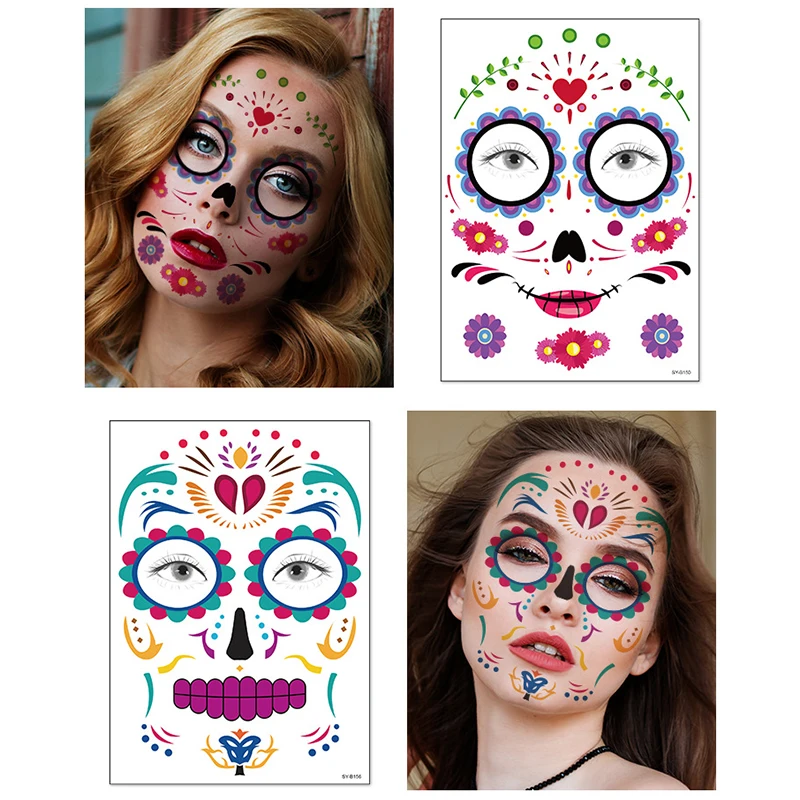Временные женские татуировки, наклейки для макияжа Водонепроницаемый вечерние мексиканский череп аксессуары для ухода за кожей лица Переводные сексуальные татуировки